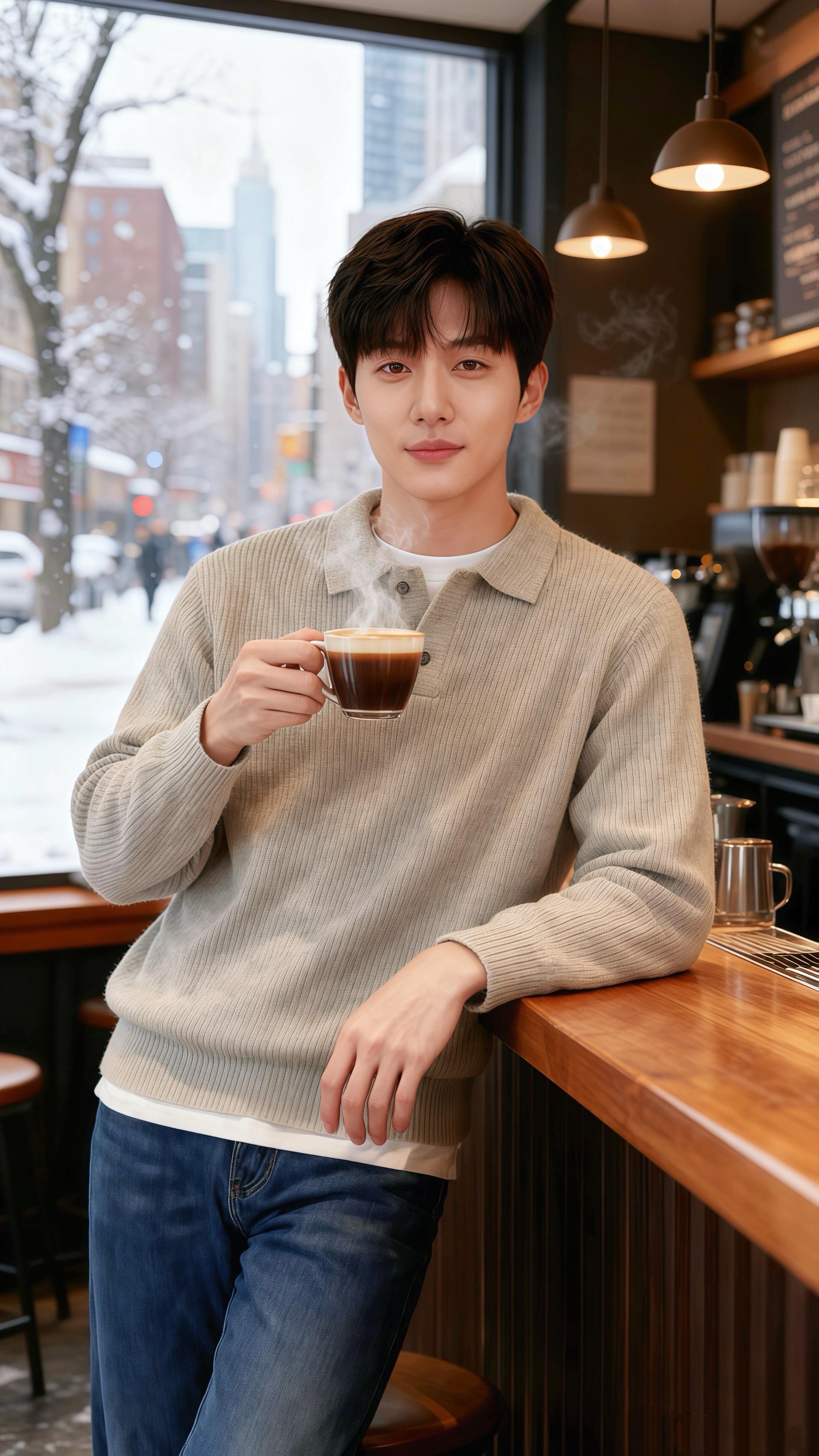 去年冬天,他挤在没有暖气的出租屋改策划,毛衣起了球也舍不得换;如今坐在暖黄灯光里,窗外雪落满街,咖啡的蒸汽裹着衣料的软暖,像把生活的褶皱慢慢熨平。
