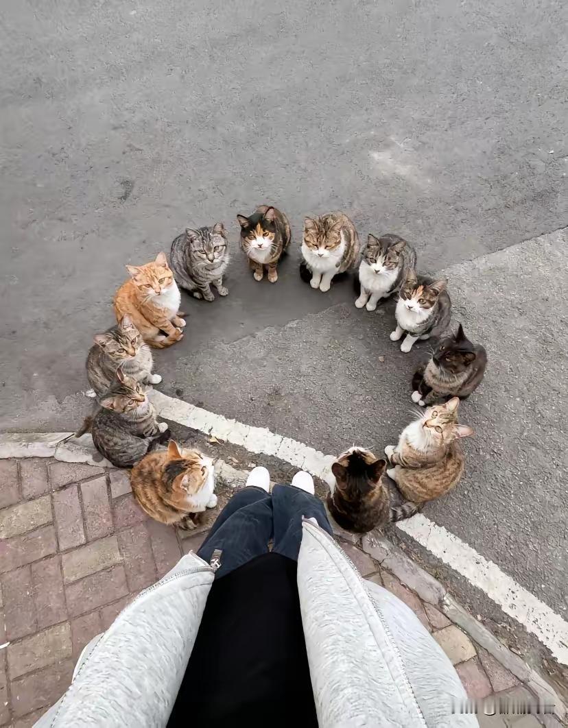 一个去喂流浪猫的志愿者,能轻易的就组起一个猫圈也是饭圈。 这是人与动物的情感圈! 点赞善良圈!