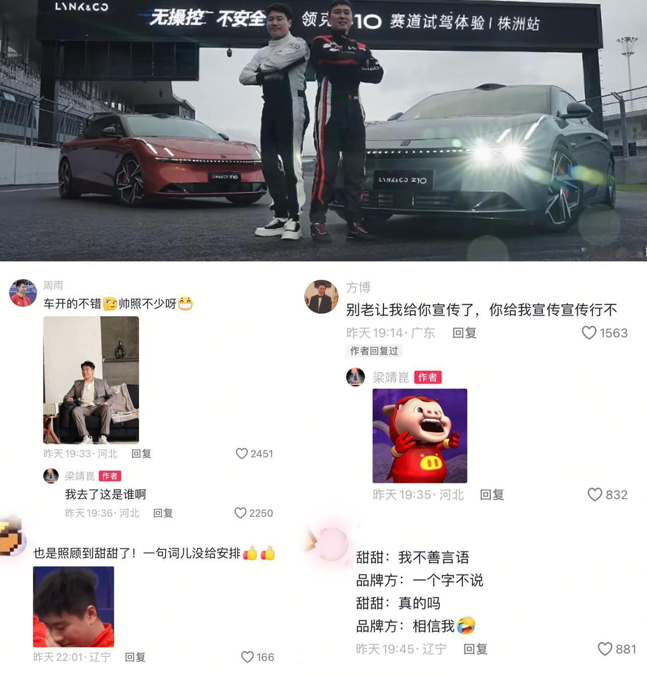 梁靖崑拍摄的赛场广告,很酷, 网友说,品牌方懂甜甜,所以一句台词也没有安排。 周