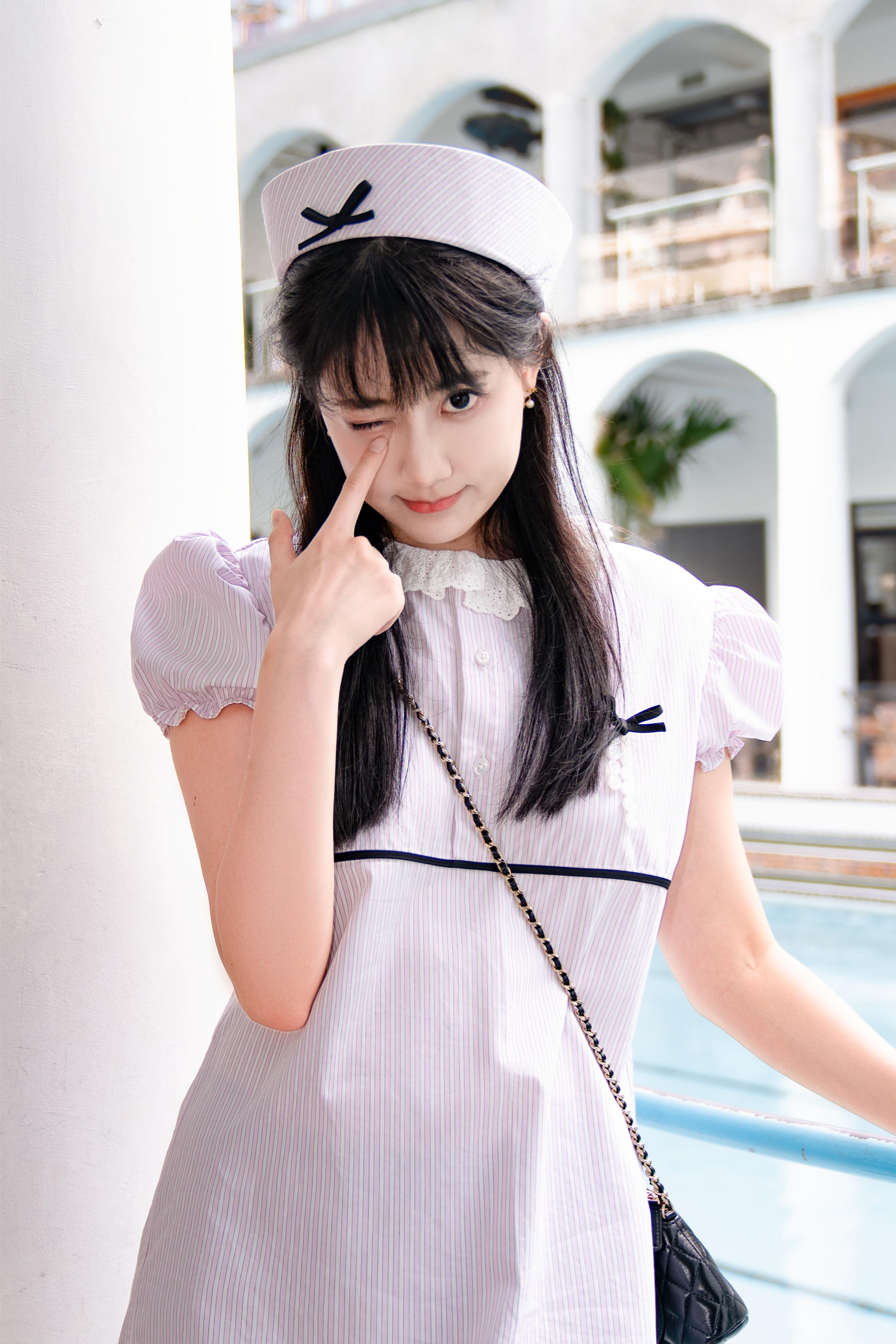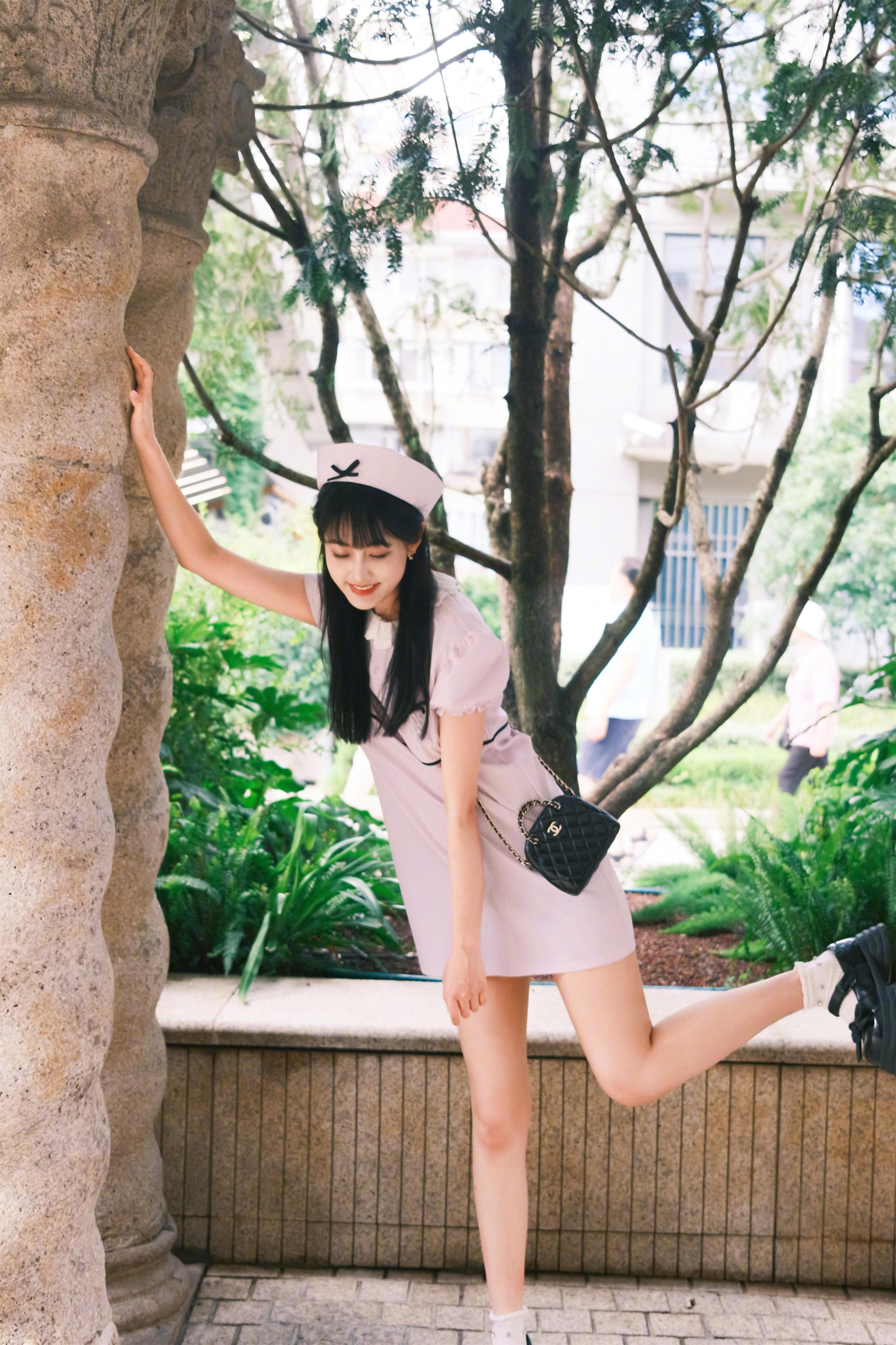 李艺彤小姐姐,白裙子秋日少女穿搭