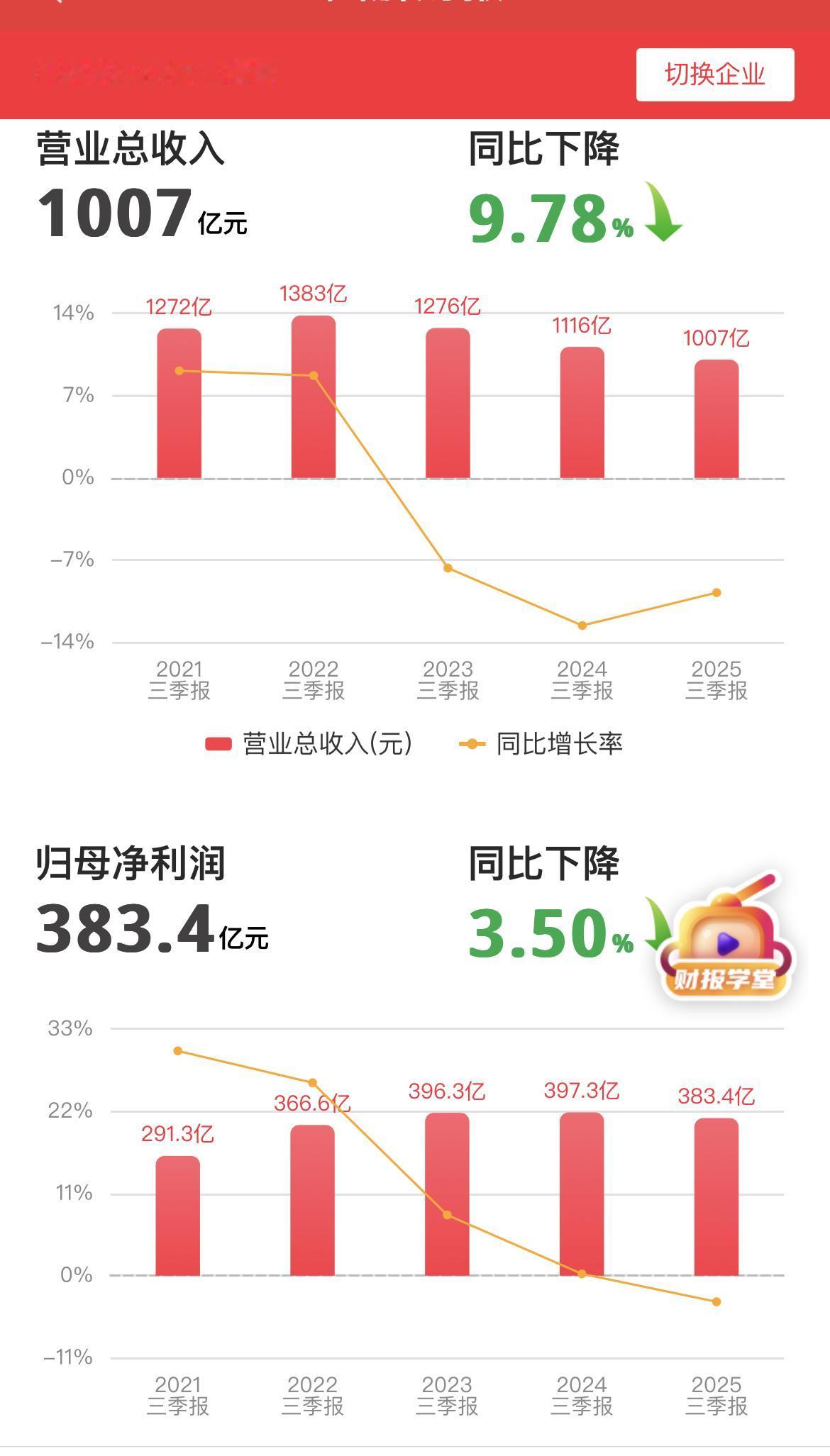平安银行2025年三季报简介。 …………………………………… 2025年1-9月,平安银行实现营业收入1006.68亿元,同比下降9.8%; 实现净利润383.39亿元,同比下降3.5%。 业绩下滑主要是受贷款利率下行、业务结构调整以及市场波动等因素影响。 1-9月净息差1.79%,较去年同期下降14个基点,债券投资等业务非利息净收入也有所下降。 …………………………………….. 9月末,资产总额57667.64亿元,其中发放贷款和垫款本金总额34177.53亿元,较上年末增长1.3%。企业贷款余额较上年末增长5.1%。个人贷款余额较上年末下降2.1%,抵押类贷款占个人贷款的比例为63.6%。 9月末,负债总额52488.34亿元,其中吸收存款本金余额35549.55亿元,较上年末增长0.6%。 1-9月,计息负债平均付息率1.73%,较去年同期下降47个基点;吸收存款平均付息率1.70%,较去年同期下降43个基点。 9月末,个人贷款余额17291.92亿元,较上年末下降2.1%,但住房按揭贷款余额较上年末增长8.1%,汽车金融贷款余额较上年末增长2.2%。个人存款余额12796.30亿元,较上年末下降0.6%。 9月末,企业贷款余额16885.61亿元,较上年末增长5.1%;企业存款余额22753.25亿元,较上年末增长1.3%。 …………………………………… 9月末,平安银行不良贷款率为1.05%,较上年末下降0.01个百分点; 其中,企业贷款不良率为0.86%,较上年末上升0.16个百分点,主要是部分存量房地产业务风险增加;个人贷款不良率为1.24%,较上年末下降0.15个百分点。 逾期率从年初的1.52 %下降至1.31 %。 拨备覆盖率为229.60%。环比下降8.88个百分点; 拨贷比2.41,环比下降10个基点。 ………………………………………. 前十大股东,港股通卖出1.22亿股、4只沪深300基金:分别卖出710万股、380万股、124万股、107万股。 总股东户数45.4万户,较半年报增加1万户。 ………………………………………. 总体来看,平安银行在2025年前三季度业绩表现有喜有忧,虽面临营收和净利润下滑的压力,但在资产质量、负债成本控制等方面仍有亮点。 平安银行的总资产和总负债没有增长,仍在休养生息。 平安银行正处于改革期,短期不要指望净利润大幅增长,净利润能够稳住不下降就已经不错了。 …………………………………