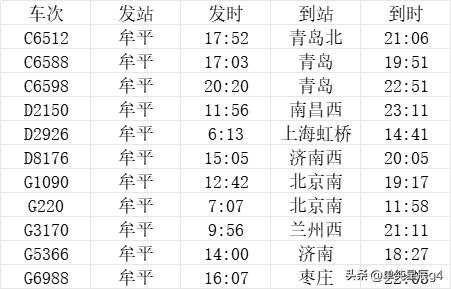 烟台牟平站11趟始发列车一览,10月28日起分流烟台南站断路改造的列车 牟平站,位于山东半岛烟台与威海中间的烟台市牟平区,站台规模二台四线,途经的铁路是青荣城际铁路,向东连接威海和㭟成,向西连接烟台南站,青岛和潍坊方向。 2025年10月28日起,烟台南站正式断路改造,预计2027年恢复通车。这一期间牟平站承担烟台与威海的列车到发,牟平站也将迎来始发列车的开行。 牟平站日到发列车23趟,始发列车11趟。 C字头列车三趟,为省内的青岛北站和青岛站方向,途经威海,荣成,威海南海,经由莱西回到青荣城际铁路上。 D字头动车组列车始发开行三趟,D2150牟平站开往南昌西站,途经连云港,扬州,合肥等跨省城市。D2926牟平站开往上海虹桥站。D8176牟平站开往济南西站,最高时速250公里。 G字头动车组列车始发开行5趟,最高时速350公里,G1090和G220牟平站开往北京南站,G3170牟平站开往兰州西站,G5366牟平站开往济南站,G6988牟平站开往枣庄站。 烟台有4个千年古县,牟平就是其中之一,还有蓬莱,莱阳,莱州(古称掖县)。烟台南站改造这一期间,牟平站短暂的开行始发终到列车,而烟台南站恢复开通后,牟平站的始发列车又会回到烟台南站。