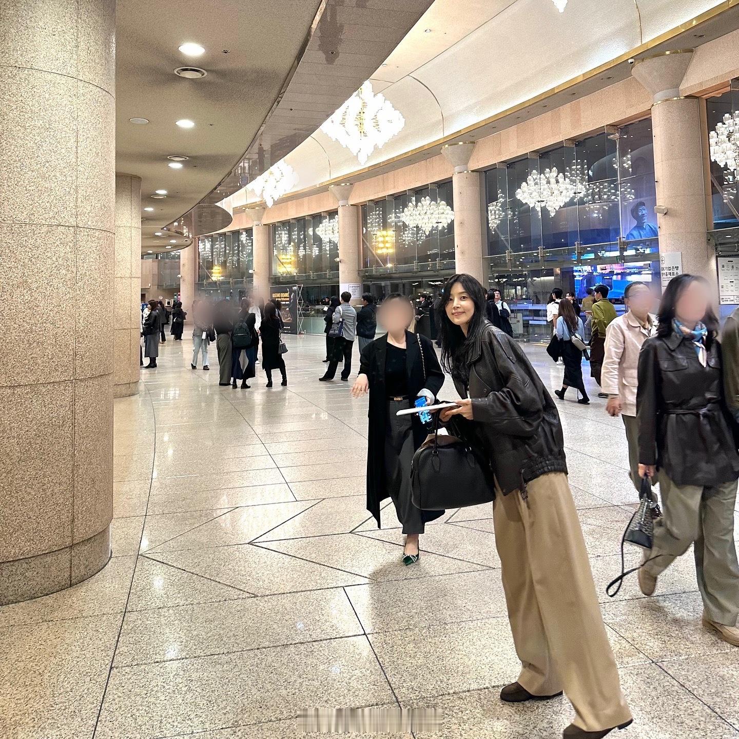 张天爱跟素人合影,胯真的好宽,大宅院似的