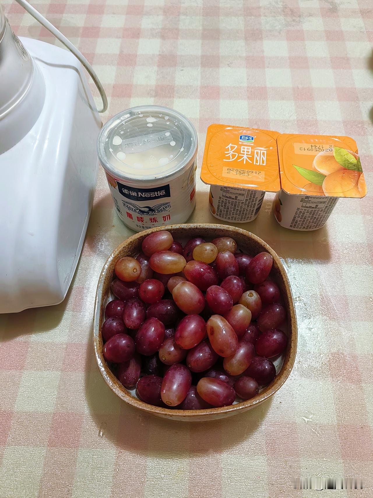 友们周六愉快![玫瑰] 时间过的真快转眼又到周六了。 今天小宝贝休息了, 天气越来越冷,想喝果汁我来给她做吧。[大笑] 昨天买了葡萄提子,🍇 今天就葡萄果汁。两小盒酸奶、一勺雀巢炼乳、一杯凉白开。 豆浆机开起来,[祝福] 红葡萄提子和它们一起搅拌,用了两分钟做好了。 友们口感真不错,[星星眼] 小宝说味道真不错。干净、营养、又美味。