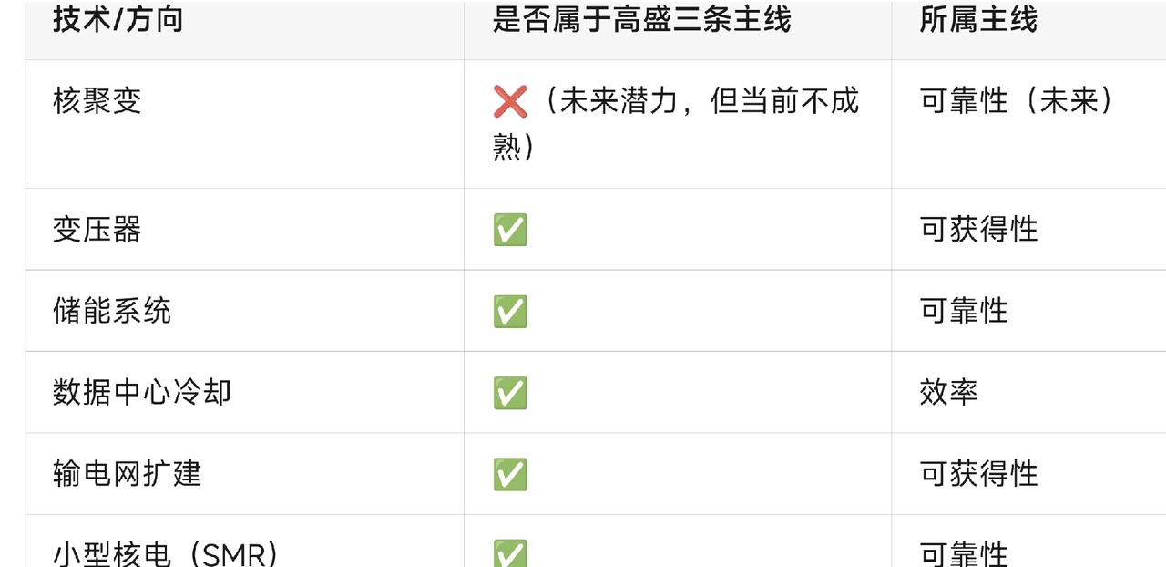 高盛:AI大模型的尽头是电力。那Ai电力这块,我们应该看什么。今天就研究这个课题。 适合中长线逻辑,错过PCB,存储的别再错过了。因为这可能是AI最后一块预期差。 基于高盛说的6p中的3条主线,要符合可靠性、可获得性、效率其中之一。 6p指的是 Power(电力) Pipes(输配电基础设施) Plants(发电厂) Players(电力运营商) Policy(政策) Performance(效率与可靠性) (图三)已经整理好了,其中核聚变,储能,液冷,还有一个没怎么炒过的就是-变压器。 其实也炒过,但热度不高。但我们回过头看,从十一开始,核聚变因为利好急速拉了一波又回落后,这半个月的题材也是起起落落。 但你去看这几个,华明、思源、科陆、四方。都在趋势中接近新高。不知道多少人还记得23 24年华明默默涨了四五倍了,等人发现已是顶部。 那现在是顶还是底? 华明装备:中报净利润:3.68亿元,同比增长 17.17%。(建立在去年历史最高利润上) 思源电气:三季报21.91亿元,同比增长 46.94%(同样去年历史最高,但今年三季报利润已超去年全年!海外订单增长) 科陆电子:三季报2.3亿元,增长250%,得益于储能业务增长。(同时拥有固态变压器) 四方股份:中报净利润4.76亿元,同比增长12.41%,拥有固态变压器核心技术壁垒。 核心中军思源,预期差弹性四方。(行业分析,仅供参考)