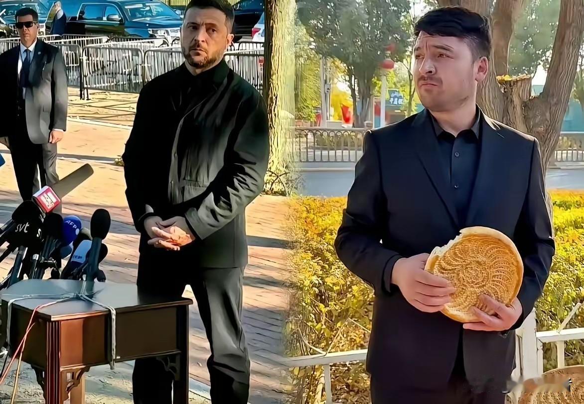 新疆卖囊的大叔长相酷似泽连斯基走红网络。 仔细一对比,这两人的眉头紧锁,鼻子、胡子脸部表情简直跟一个模子里刻出来的一样。 网友调侃赶紧去做个基因检测,看是不是多年前走散的兄弟。 看来新疆大叔的馕饼又要大卖了。