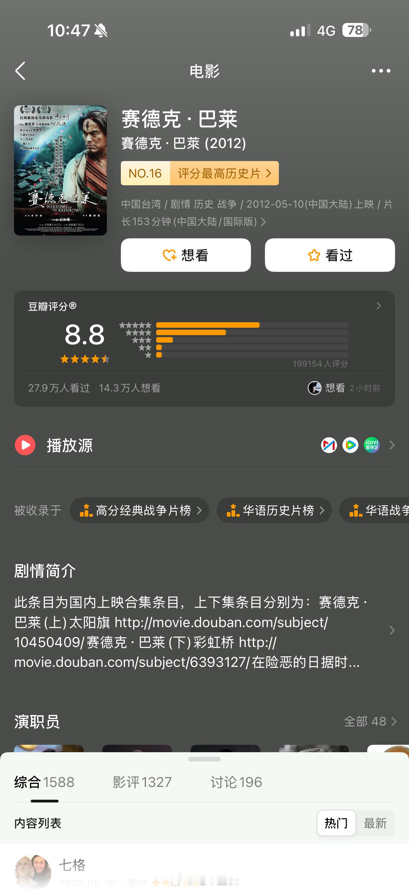 台湾周末没事的朋友,给大家推荐一部电影,分上下两集:《赛德克巴莱》。这是中国台湾原住民同胞浴血奋战保卫家园的故事,也是小日本侵华辱华的罪证记录的影视表达。中华儿女是一家,台湾永远是中国不可分割的一部分。 ​​​