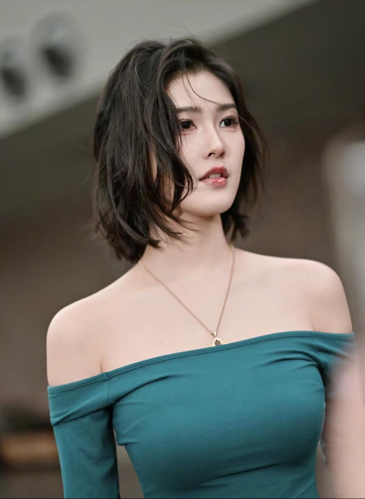 都市女孩的时尚穿搭,绿色露肩上衣搭配高腰裙,优雅又自信!👗💃🏻