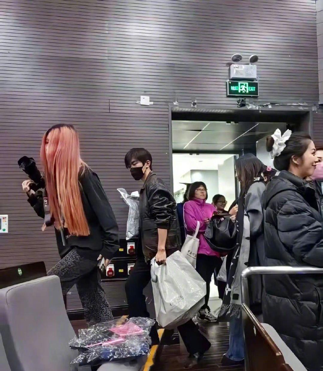 张天爱跟素人合影,胯真的好宽,大宅院似的