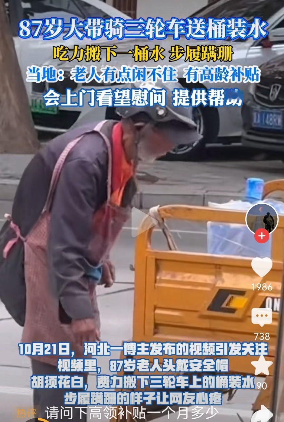 看到这位87岁的老爷爷送桶装水 很感慨 那些年年轻轻就在家啃老的年轻人 不觉得脸红吗? 老人有三个儿子 可老人硬是用自己勤劳的双手支撑着自己的生活 真是榜样👍👍👍