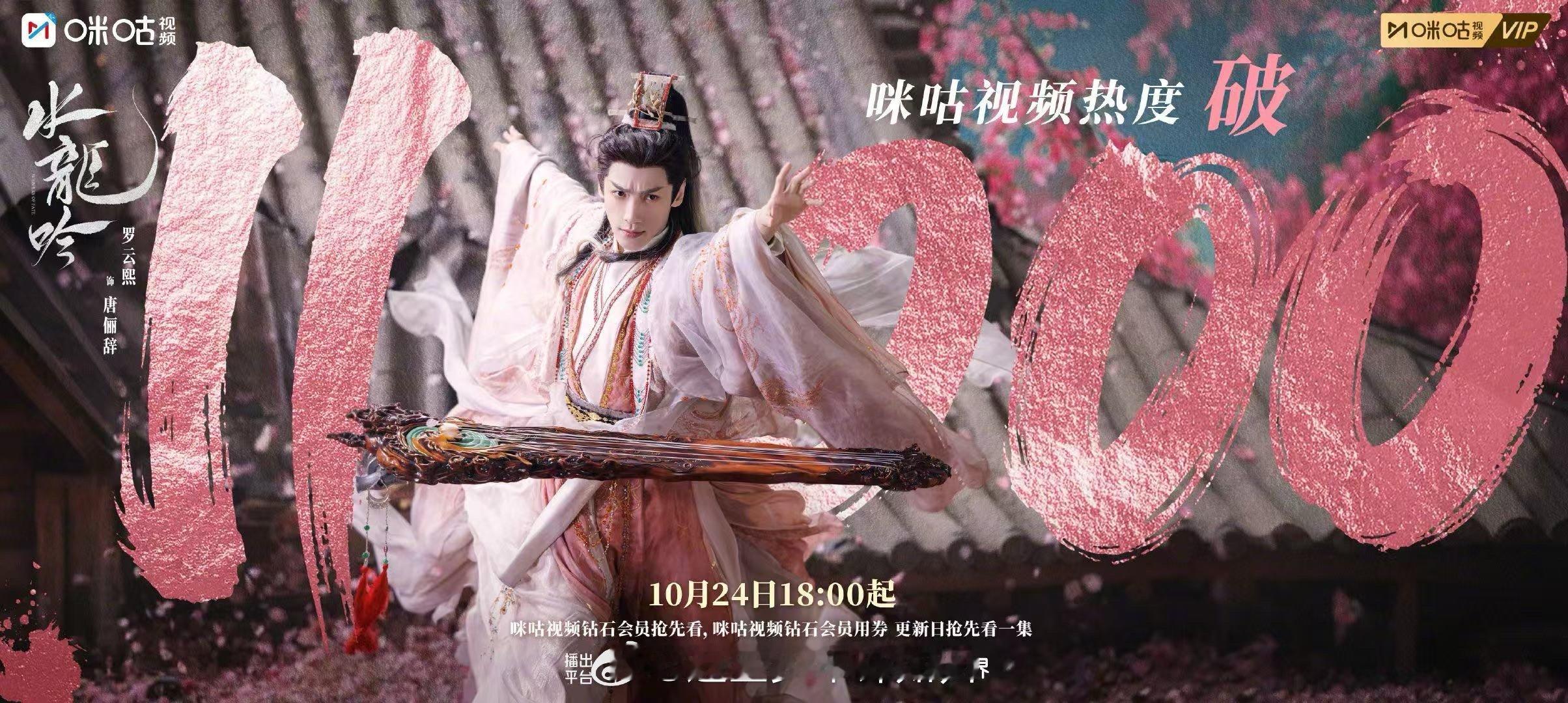 水龙吟咪咕视频热度破11000 全员演技颜值双在线!罗云熙把唐俪辞的清冷与温柔诠释得恰到好处,其他演员的角色也各有亮点,这样的阵容+这样的故事,热度不破万才奇怪~速来咪咕追更!