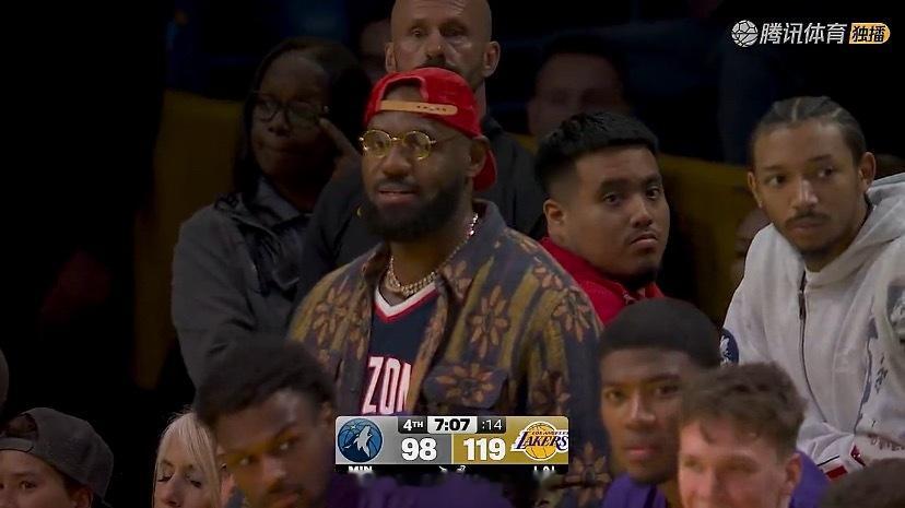 湖人队已领先21分,镜头给到“作壁上观”的詹姆斯[doge]森林狼vs湖人