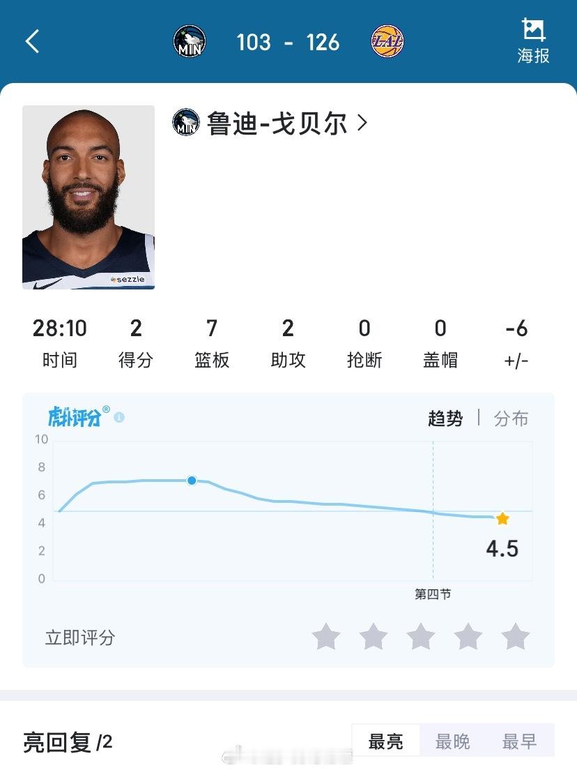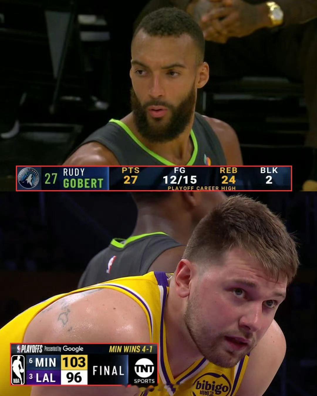 戈贝尔本场状态低迷,仅得2分。上赛季季后赛首轮最后一场,戈贝尔面对詹姆斯的主防,
