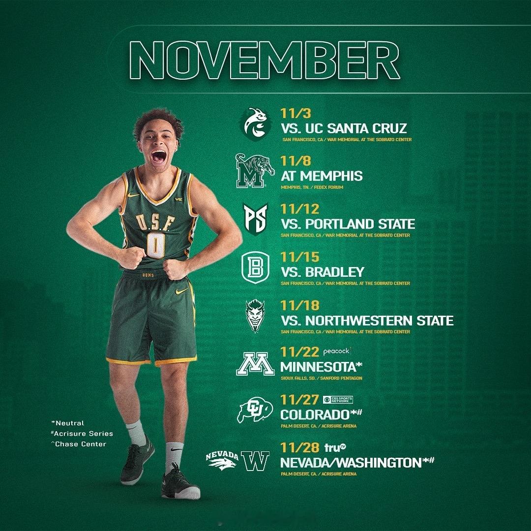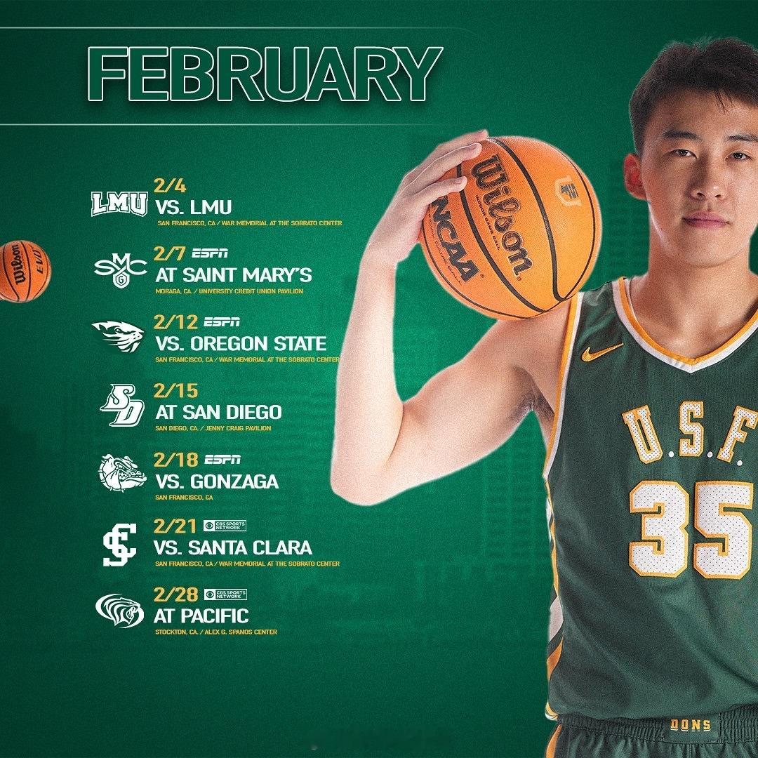 旧金山大学今天放出全家福,能看到35号王俊杰和23号赵维伦。明天上午10点,球队有场热身赛,正式赛程是图3-图6。ncaa