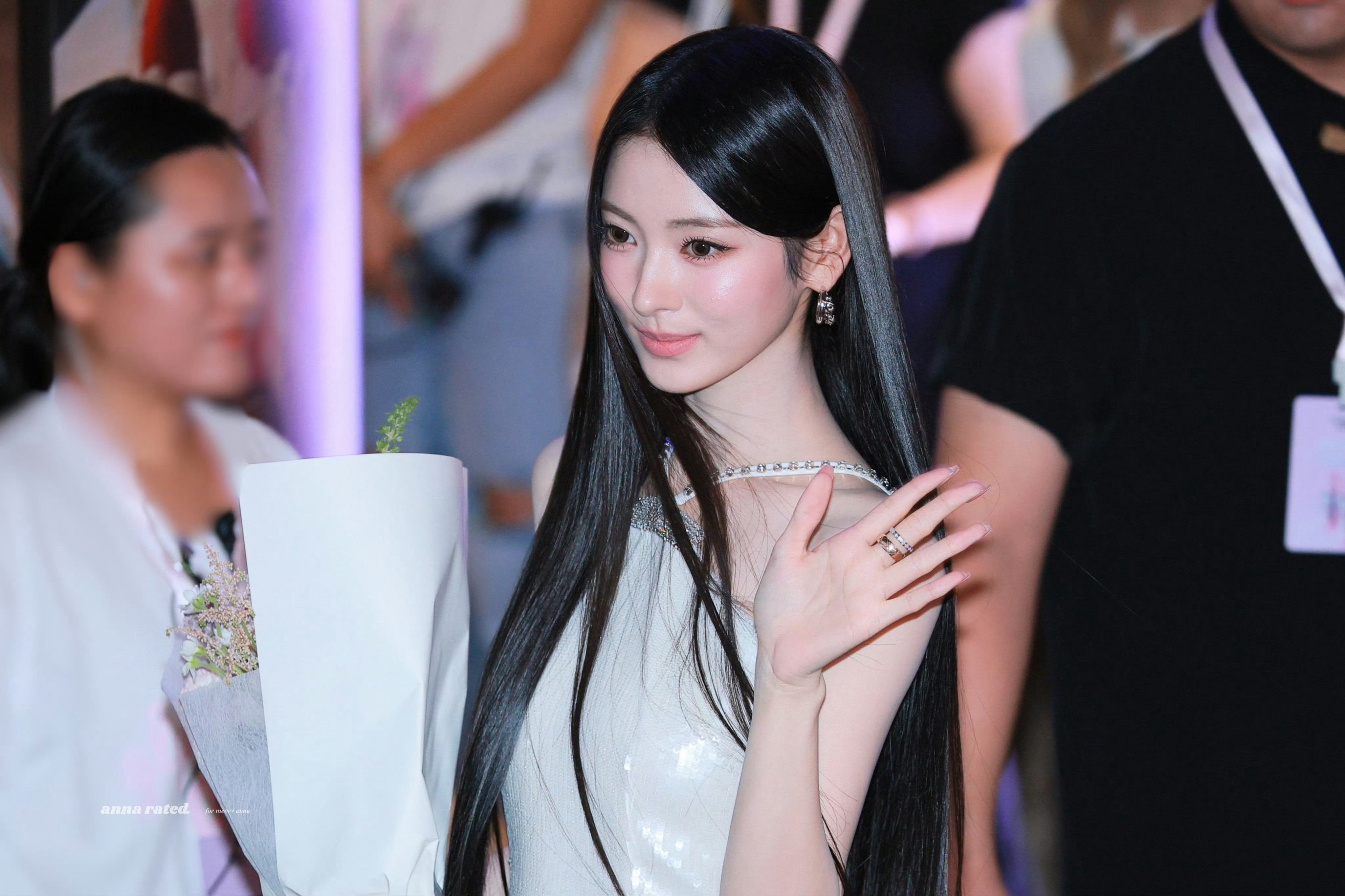 张天爱跟素人合影,胯真的好宽,大宅院似的