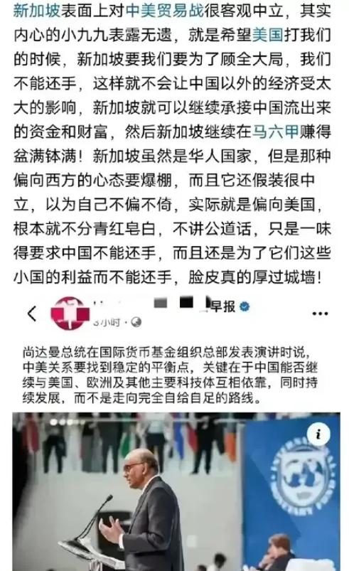 这次放弃新加坡,选择在马来西亚谈判,完全是新加坡自己作妖作的,本来新加坡一直是两边之间的中介,就是两边都吃得开,双方都信任新加坡,新加坡也保持中立,但是这两年,新加坡的态度越来越偏向西方了,西方一切都好说,轮到我们被针对时,新加坡立马跳出来说不能还手,这不是自找的是什么? 想当年新加坡多风光!不管是区域合作还是双边协商,只要双方想找个放心的地方谈,第一个想到的准是它。因为它一直标榜 “不偏不倚”,跟谁都能处好关系,两边都信得过它。可谁能想到,这两年新加坡像是变了个人似的,胳膊肘一个劲往西方拐。 以前这种级别的谈判,新加坡都是热门候选地。可新加坡这两年的表现,实在让人没法再信任它的 “中立” 了! 西方某些国家搞贸易保护,针对咱们的出口企业加关税,明眼人都知道是西方不讲理。可新加坡倒好,不劝西方收手,反而站出来说 “咱们应该克制,别搞反制”。 西方搞贸易保护、拿金融手段威胁人时,它不提 “克制”;咱们正当反制维护利益,它倒跳出来劝 “别还手”。这种双重标准,也难怪这次谈判直接被绕开。 新加坡作为东道主,本应该在其地盘上的会议主持公道,平衡各方立场。结果呢?它不仅没帮着说句公道话,反而跟着西方的调子走,提的建议全是围着西方的需求转,把我们的合理诉求晾在一边。从那以后,新加坡的中立就靠不住了。 要知道,新加坡能当这么多年 “中间人”,靠的就是 “两边不得罪、两边都信任”。以前它多精明,既跟咱们保持密切的经贸合作,每年从咱们这儿赚不少钱,又跟西方搞好关系,两边都能捞好处。 可这两年它像是飘了,觉得靠上西方就能高枕无忧,开始慢慢丢掉中立的底线,结果把自己的立身之本给丢了。 反观马来西亚,这两年一直保持着中立务实的态度。跟咱们合作时,实实在在谈项目,不管是基建还是经贸,都拿出诚意;跟西方打交道时,也不盲目跟风,该坚持的立场一点不含糊。 去年咱们跟马来西亚谈铁路合作,人家二话不说,按平等互利的原则推进,没搞那些虚头巴脑的政治操弄。这次选在马来西亚谈判,也是看中了它这份靠谱的中立态度。 作为一个小国,新加坡在国际上立足的关键,就是靠 “中立中介” 的身份。现在它偏向西方,不仅让咱们和其他中立国家失望,时间长了,西方也未必真把它当自己人,最后很可能落个 “两边不讨好” 的下场。 新加坡每年跟咱们的贸易额几百亿美元,不少企业都把新加坡当进入东南亚市场的跳板。可它现在偏向西方,搞这些不中立的操作,咱们这边肯定会有所顾虑,以后合作的时候难免会多留个心眼。 别的不说,就说这次谈判选在马来西亚,其实也是给新加坡提个醒:中立没了,机会也就没了!别以为靠上西方就能万事大吉。现在的国际形势早就变了,光靠抱大腿是走不远的,只有真正保持中立,公平对待每一方,才能保住自己的 “中间人” 地位。 要是再这么继续偏向西方,作妖下去,以后怕是越来越多的谈判会绕开它,到时候再后悔可就晚了! (每天更新,欢迎关注,喜欢文章的可以帮忙点个赞留条评~) 对此大家有什么看法?