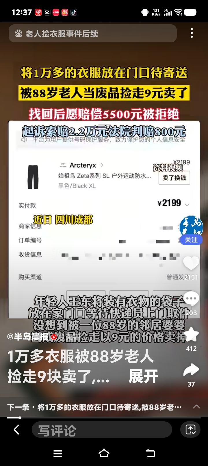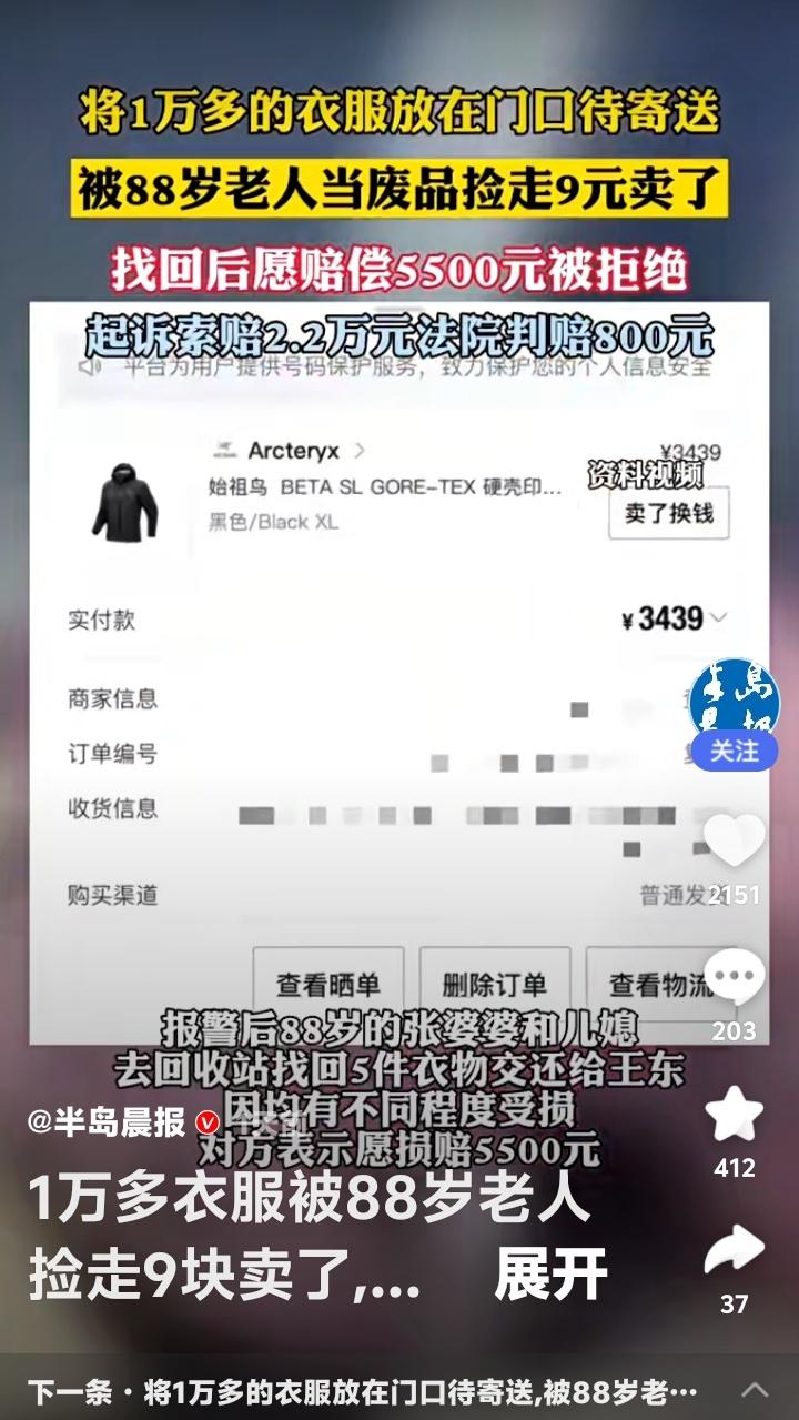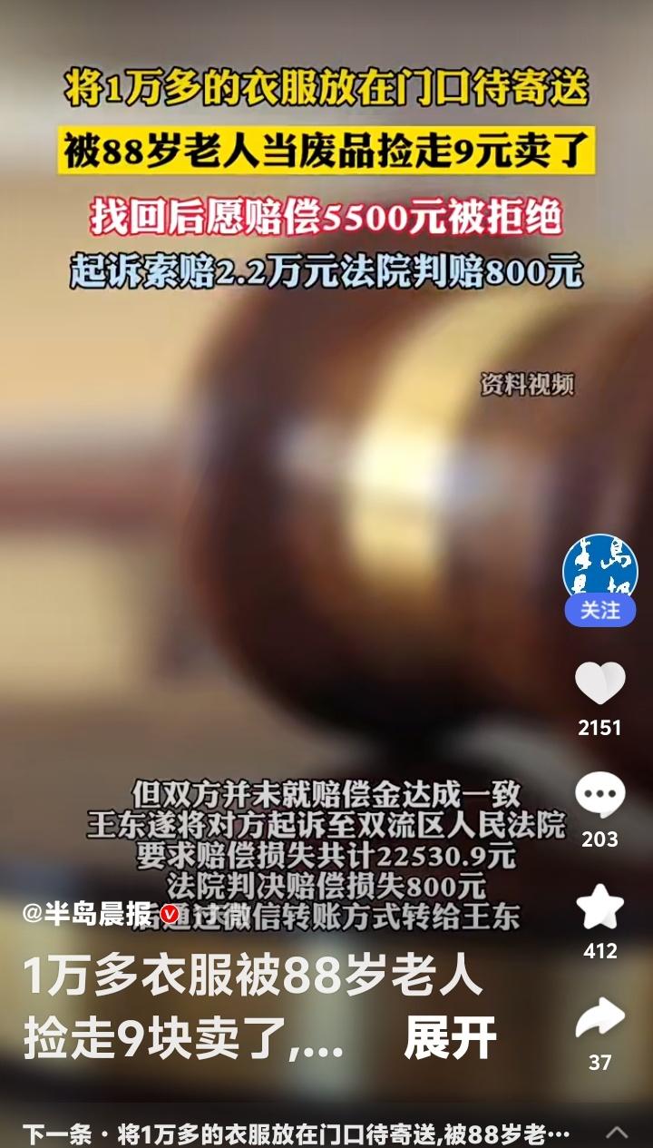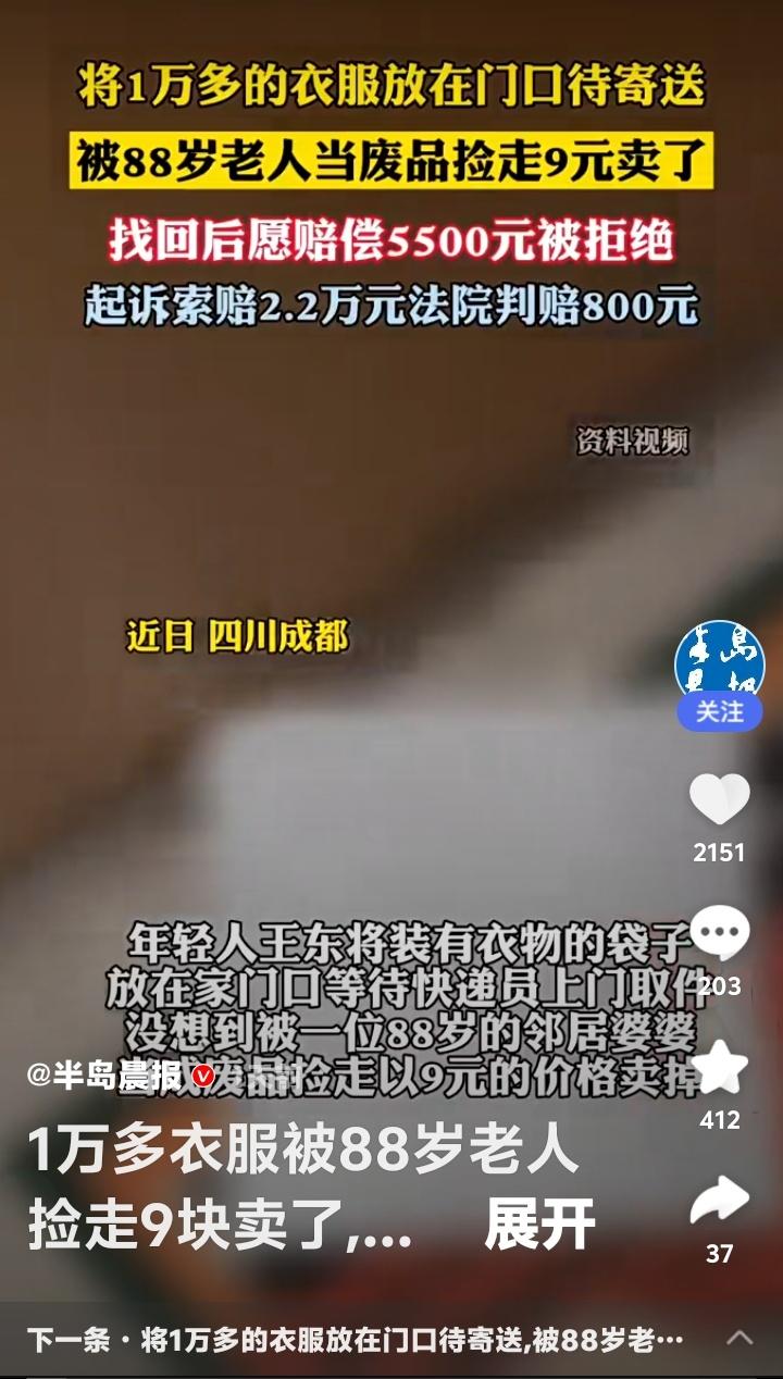 成都双流区惊现天价衣物纠纷!88岁老人误将万元名牌服装当废品9元卖掉,法院判决赔偿800元引发全网热议 (来源:根据成都双流区法院公开案件及当事人采访综合整理) 年轻人王东怎么也没想到,自己放在家门口等待快递员取件的纸袋,竟会引发一场牵扯法律、道德与人性的风波。那个看似普通的下午,他像往常一样将装有始祖鸟、Arc’teryx等品牌价值过万元的衣物打包好,搁在公寓楼道旁。谁知这一放,竟让这些精心挑选的装备“走”上了一段荒诞的旅程——被邻居88岁的张婆婆误当作废品捡走,最终以9元的价格流入了废品回收站。 当王东发现衣物不翼而飞时,瞬间惊出一身冷汗。他原以为只是快递延误,调取监控后却看到张婆婆蹒跚的身影。老人吃力地拖走袋子的画面,让他心情复杂:一边是心疼自己省吃俭用买下的专业户外装备,一边又对这位耄耋邻居生出一丝无奈。报警后,张婆婆的儿媳匆忙带着老人去废品站翻找,最终只找回部分严重受损的衣物。 更让人唏嘘的是双方的后续交涉。张婆婆一家主动提出赔偿5500元,但王东坚持按购买价全额索赔22530.9元。老人儿媳红着眼眶解释:“婆婆平时就爱捡纸皮贴补家用,她真不是故意的。”而王东则无奈道:“这些衣服是我攒钱买的,现在破损严重,维修费都要几千。”一边是年轻人的财产权益,一边是老人的无心之失,这场冲突早已超出金钱本身。 法院的判决书成了这场风波的转折点。法官在审理中既认可了王东的损失,也考虑到张婆婆年事已高、经济状况有限,最终判决赔偿800元。这一结果看似“和稀泥”,却暗含深意:法律不仅要维护公平,也要传递温度。判决书中特别提到,“邻里纠纷应兼顾情理法平衡”,被网友评价为“一份充满人性化的判决”。 事件曝光后,网友的评论炸开了锅。有人吐槽:“现在放门口的东西都得贴个‘非废品’标签吗?”也有人感慨:“年轻人维权没错,但老人捡废品背后的养老困境更值得关注。”更有细心人算了一笔账:张婆婆捡9元废品,却赔出800元,相当于她捡3个月纸皮的收入。这种对比折射出城市生活中不同群体的生存现实。 其实,这场纠纷背后藏着现代都市人的共同焦虑。在快节奏的生活中,邻里关系逐渐淡漠,公共空间的使用规则模糊不清。王东的“习惯性放置”与张婆婆的“习惯性捡拾”,本质都是城市化进程中人际边界模糊的缩影。若双方早有机会多一句问候、多一次沟通,或许就能避免这场官司。 值得深思的是,类似事件正在许多城市悄然上演。从上海老弄堂到北京胡同,从高档小区到老旧院落,代际差异、生活习惯冲突屡见不鲜。有社区尝试设立“共享暂存区”,有物业推出“上门取件提醒服务”,这些微创新正试图在钢筋水泥中重建邻里信任。 回看整个事件,最打动人的或许是张婆婆儿媳的一句话:“妈第二天偷偷哭了,说差点害了年轻人。”而王东在收到800元转账后也坦言:“如果早知道婆婆这么难过,我可能会换种方式解决。”一场官司,让两代人看到了彼此的困境,也让旁观者反思:在维护自身权益时,我们是否也能给善意留一点空间? 成都双流区 衣物 88岁老人万元衣服9元卖废品法院判决全网热议 邻里关系 天价纠纷 代际沟通法律温度 (本文基于成都双流区法院案件编号(2023)川0116民初×××号及当事人采访,为保护隐私部分信息已处理)
