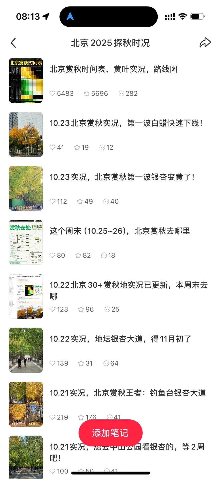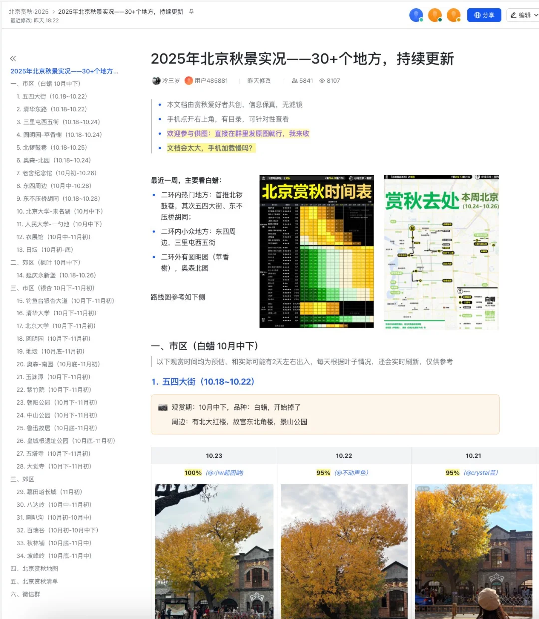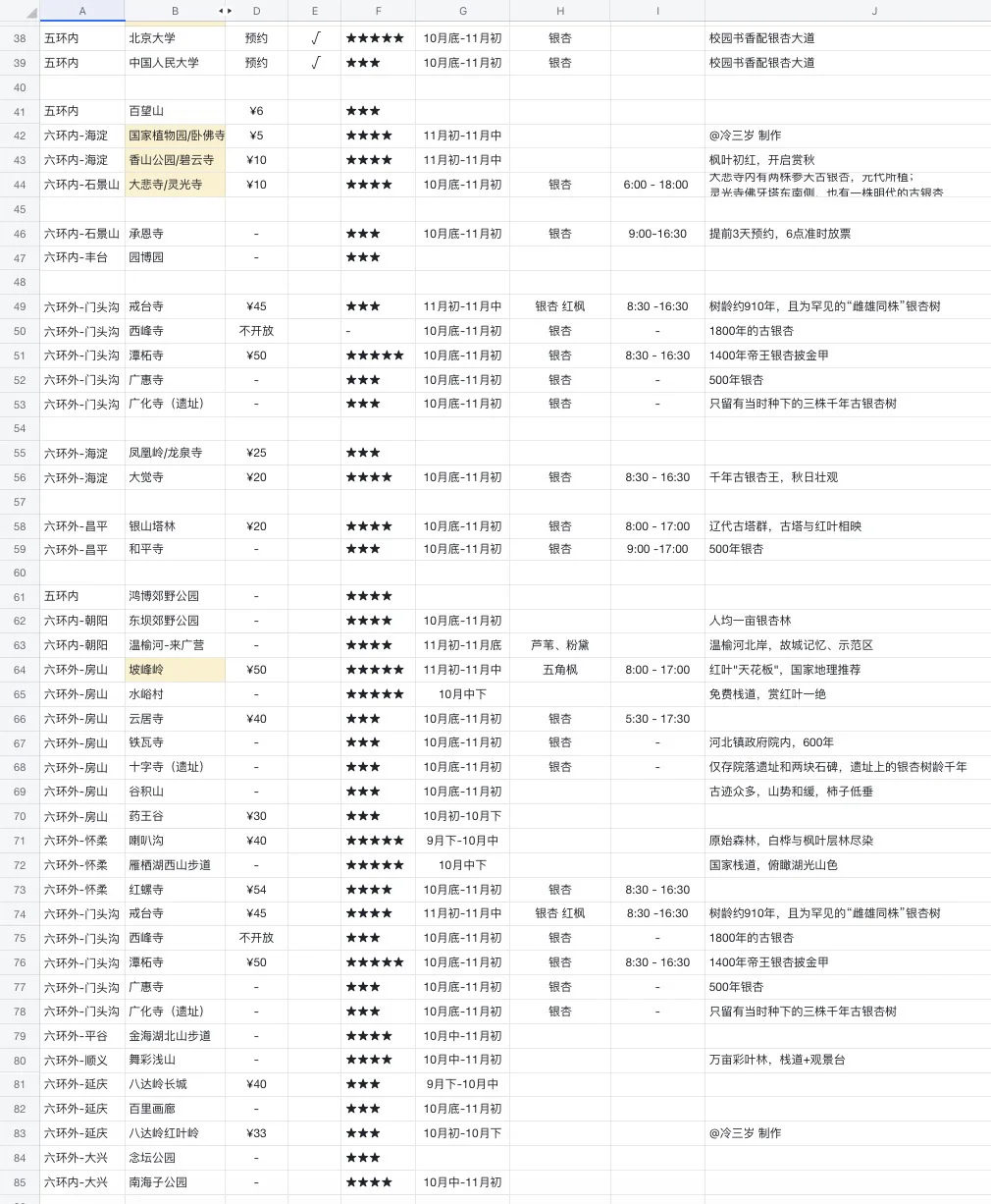 目前我跟踪了两周北京30+处赏秋地方