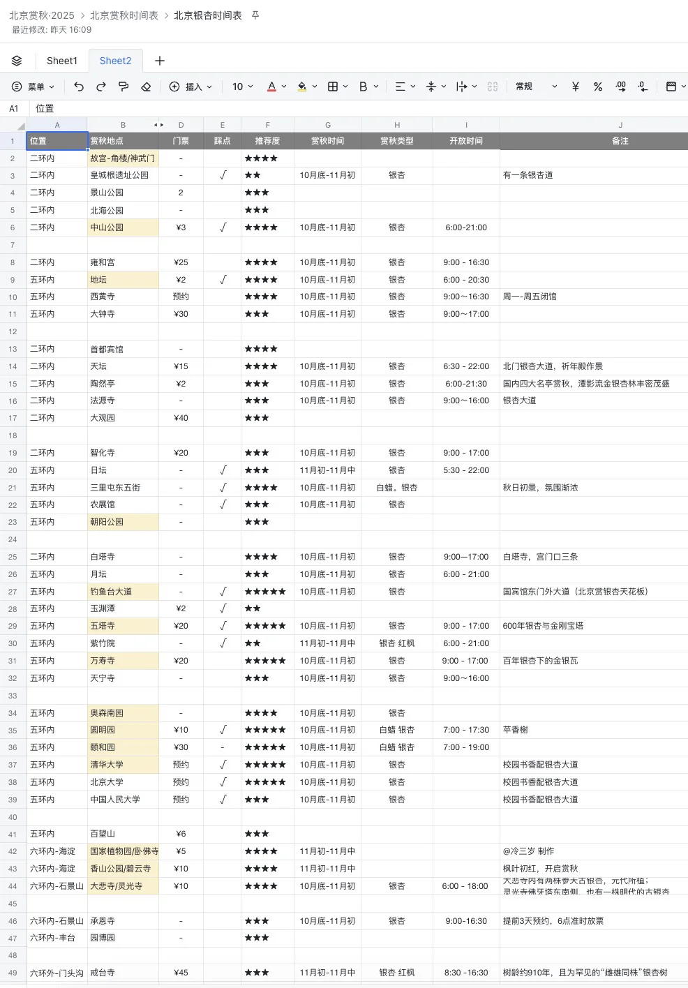 目前只是简单分类了一下,按区域放在一起,某几个地方可以连着一次性逛完,推荐评级最近还会刷新,部分地方我还没来得及踩点完。最近我会抓紧看完,然后弄完分享出来。