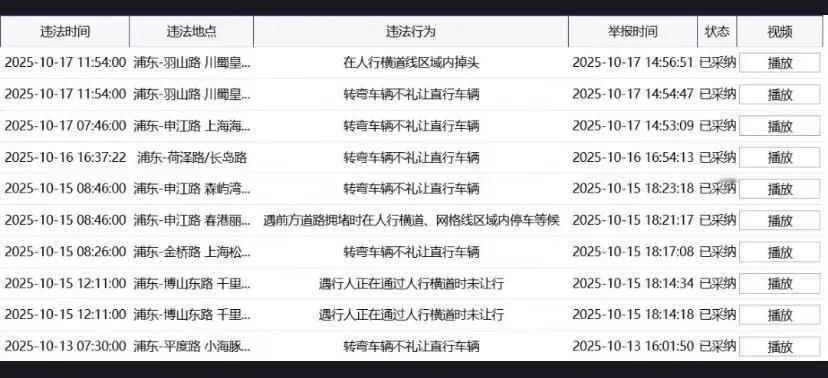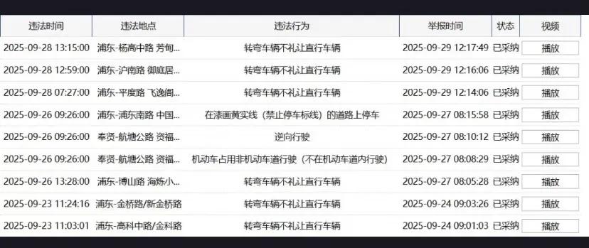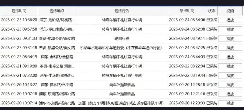 网友贴出在上海部分交通违法举报清单,看来“转弯车辆不让直行车辆”的司机不在少数呀![尬笑] 文明开车,安全第一![赞] 城市观察员