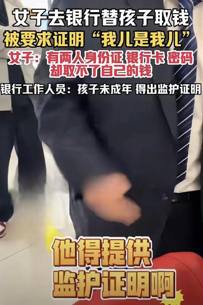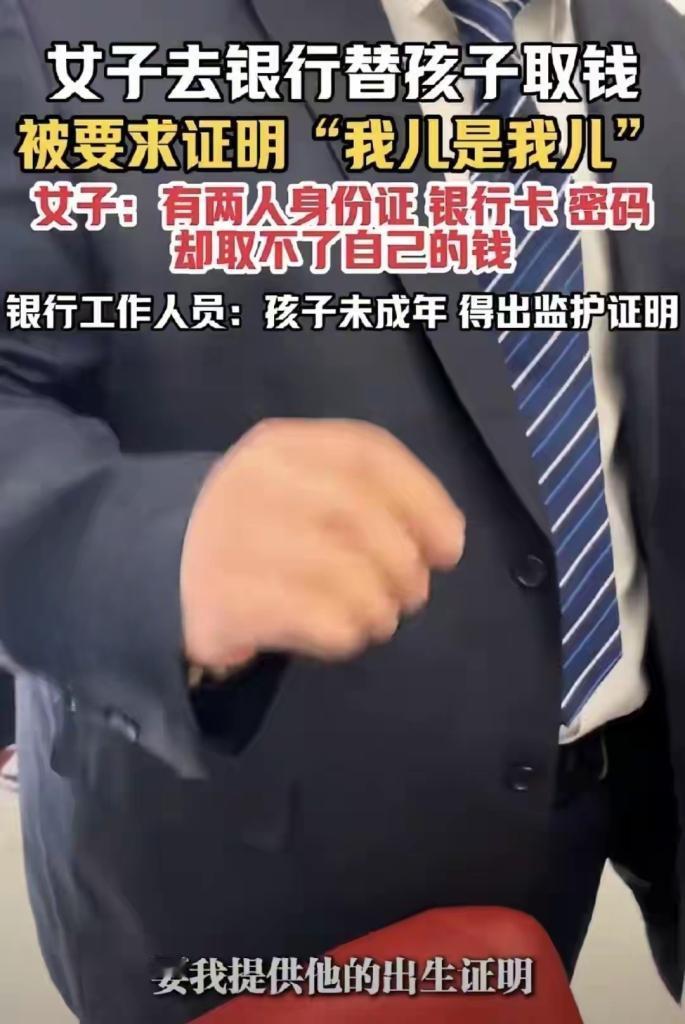 亲妈取钱被卡“我儿是我儿”,这证明到底防谁呢? 10月23日山东,一位妈妈替未成年孩子取钱,手里攥着俩身份证、银行卡,密码也对得丝毫不差,结果银行工作人员一句话给她噎住了:“得要监护证明才行。”最后钱没取到,还落了一肚子疑惑——我证明我是孩子妈,到底要咋证明? 这事听着有点“离谱”,但细想也不是头一回见。你说身份证是国家发的“身份通行证”,密码是只有家人知道的“私密钥匙”,这俩加起来还不够?我猜银行这么做,大概率是怕担“责任风险” ,毕竟之前有过冒用亲属身份取钱的纠纷,现在干脆搞个“一刀切”,不管你证件多全,先拿监护证明来“兜底”。可这“兜底”却把正经办事的家长坑了,就像你去超市买东西,带了钱和会员卡,收银员却让你证明“这钱是你的”,这不折腾人嘛? 再说了,真要有人想“钻空子”,伪造个监护证明也不是没可能,反而把普通老百姓的办事路堵死了。我觉得这事后续可能会有两种走向:要么银行悄悄调整规则,比如用户口本或者电子亲属关系证明替代;要么会有更多人遇到类似情况后吐槽,倒逼监管部门出来“捋一捋”这种“奇葩要求”。毕竟现在都讲究“让数据多跑路,群众少跑腿”,总不能让一张证明,把便民服务变成“烦民门槛”吧? 大家平时办事遇到过这种“没必要的证明”吗?你要是这位妈妈,会回头去开监护证明,还是直接换家银行?