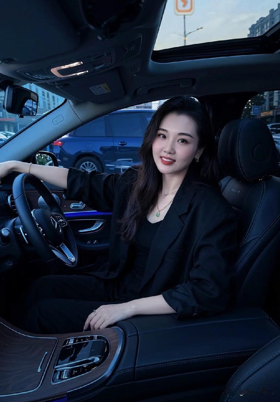 都市女郎驾豪车,自信满满笑颜开