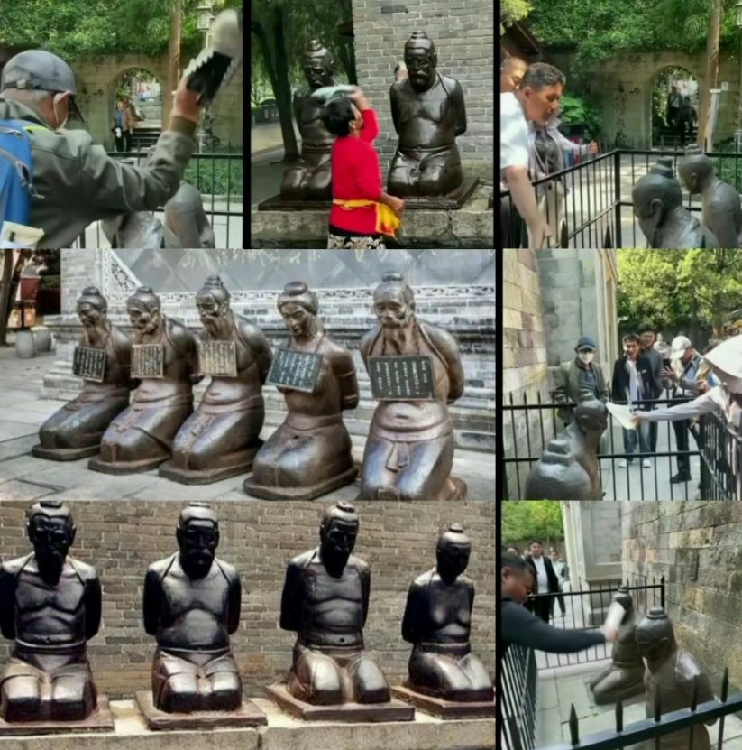 劝一万次,不如行动一次,日本年年有人参拜靖国神社,中国何不反其道而行之?将日本战犯仿塑成岳飞墓前的跪像,置于每个抗日战争纪念馆前,供国人控诉、唾弃、鞭打,以摧毁日本军国主义的意志,何尝不是功德一件? 这建议是真的妙!岳飞墓前的秦桧跪像,这东西立了几百年,到现在还有人去啐几口、骂几句。为啥能传这么久?因为它把“背叛者该受惩罚”的道理,变成了看得见摸得着的样子,不用多解释,老百姓一看就懂:做了坏事,就算死了也得跪着认错。日本那些战犯,比如东条英机、松井石根,手上沾的血比秦桧多百倍千倍,把他们做成跪像,道理也是一样的——让历史的审判不再只是书本上的文字,而是实实在在的警示。 这招最妙的是,刚好戳中了靖国神社的“假面具”。靖国神社那地方邪门得很,把14个双手沾满鲜血的甲级战犯当“英雄”供着,日本政要年年去参拜,说白了就是想把侵略历史洗白,给军国主义招魂。 咱们立起跪像,就是把他们藏在神社里的“宝贝”拉出来晒太阳,让全世界都看清楚:这些被日本捧为“英灵”的人,其实是双手沾满中国百姓鲜血的刽子手——松井石根搞南京大屠杀,几天就杀了三十多万人;东条英机在东北搞“强化治安”,多少抗日军民死在他手里。这哪是英雄,分明是恶魔。 对咱们自己人来说,这跪像更是个“活教材”。现在的年轻人没经历过战乱,课本里的“南京大屠杀”“731部队”,看文字、看图片总觉得隔着一层。可要是在纪念馆里,真真切切看到战犯跪在地的丑态,再听老人讲当年的苦:“我爷爷就是被他们用刺刀挑死的”“我老家的村子被烧得只剩断墙”,那种冲击力完全不一样。就像抚顺战犯管理所里,当年那些战犯亲眼看到中国的变化后,才真心忏悔建了谢罪碑,跪像就是让更多人直观感受“侵略带来的苦难”,比讲一万句大道理都管用。 更贴心的是,这跪像能给老辈人一个情感出口。好多经历过抗战的老人,提起日本人就掉眼泪,可除了念叨几句“那些鬼子太坏了”,好像也没别的办法。要是有了跪像,他们能指着雕像说出心里的委屈:“就是你们这些牲畜,毁了我的家!”这股憋了一辈子的气顺了,也是对先烈的告慰——你看,当年的凶手到现在还跪着谢罪呢。 在国际上这招也占理。你看德国,为了反省纳粹罪行,不光建了纽伦堡审判纪念馆,还到处搞展览,连中小学生都得去学历史,甚至专门成立机构追查漏网的纳粹战犯。人家这才叫真正的认错。可日本呢?一边说“反省历史”,一边往靖国神社跑,简直是当面一套背后一套。咱们立起跪像,就是告诉全世界:中国作为战胜国,有权利让战犯接受历史的惩罚,这不是小题大做,是对人类良知的守护。那些支持和平的国家,都会明白咱们的道理。 最解气的是,这招比口头抗议管用多了。以前日本政要参拜靖国神社,咱们除了发表声明谴责,好像也没别的实招,他们还当耳旁风。可要是有了跪像,只要他们敢去参拜,咱们老百姓就可以去跪像前控诉,媒体一拍,全世界都能看见——一边是日本把战犯当神拜,一边是战犯在中国跪着认错,谁对谁错一目了然。这就像有人当着你的面夸小偷,你直接把小偷的罪证摆出来,比吵架有力气多了。 有人担心这会激化矛盾,其实完全不会。咱们针对的是战犯,是军国主义,又不是普通日本老百姓。当年抚顺战犯管理所里,1109个日本战犯,最后个个认罪悔罪,还有人回国后建了谢罪碑,说明讲道理、摆事实能唤醒良知。跪像就是把“侵略必受惩罚”的事实摆出来,让日本有良知的人也看看:他们国家供奉的“英雄”,在受害国面前是这副模样,这比骂他们一万句都能戳中要害。 再说了,这跪像也是给军国主义敲警钟。日本总有那么些人想翻历史旧账,说什么“侵略是正当的”,跪像就像一根钉子,把“战犯有罪”的定论钉死在那里。不管他们怎么狡辩,只要这雕像立着,就没人能抹去他们的罪行。就像秦桧跪了几百年,永远摘不掉“奸臣”的帽子,这些日本战犯也得永远跪着,提醒他们:军国主义那套东西,再敢冒头就得受惩罚。 这么一看,立战犯跪像这招真是妙极了。既守住了历史正义,又教育了后人,还能戳破日本的谎言,比空喊口号实在多了。这不是为了延续仇恨,是为了让更多人记住:和平来之不易,谁要是敢再搞侵略,就得永远跪着认错。这样的事,当然是功德一件。