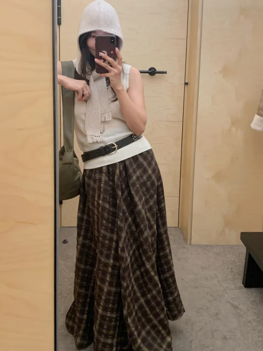 陈瑶秋日穿搭,咖啡色背心牛仔,轻曼时尚