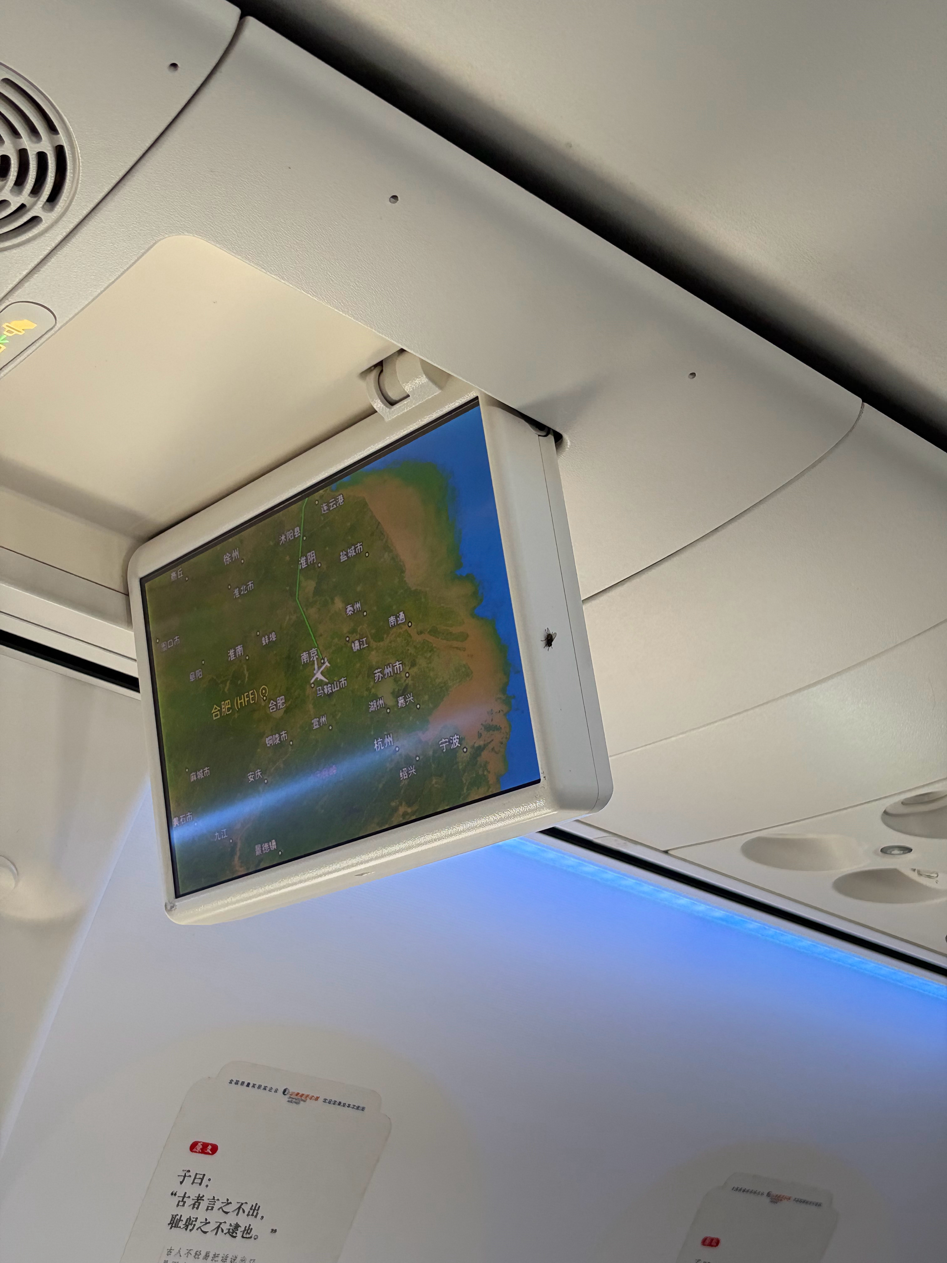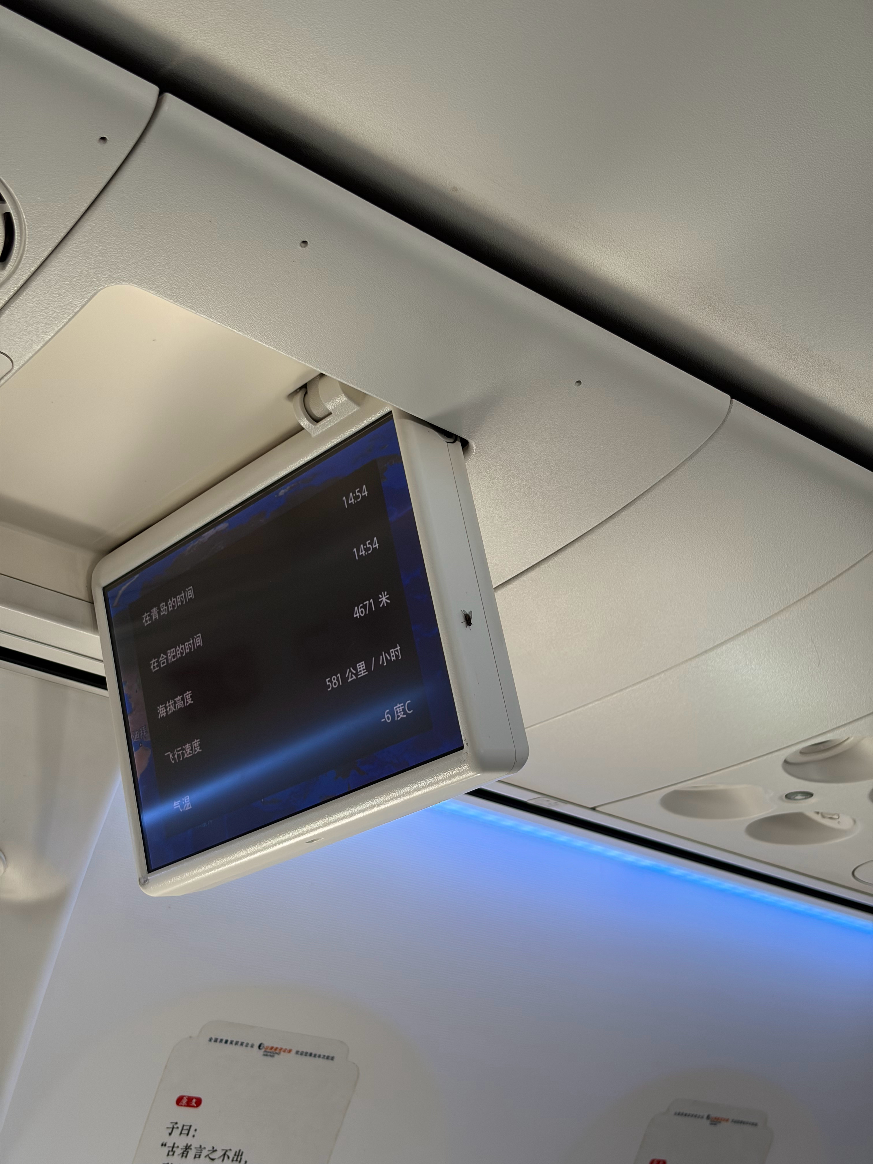 这只苍蝇登上了青岛到合肥的航班,不知道落地会不会出现水土不服[捂嘴哭]如果它不及时下飞机的话,下一段就到桂林去了。
