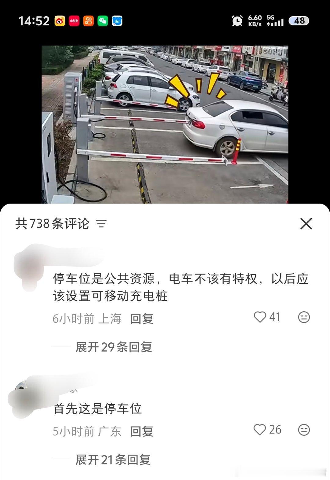 我也发现一些油车经常停在充电车位上,我这里也有。很多网友觉得这样做没毛病,认为有充电桩的电车不让停油车;没有充电桩的车位不让停电车。其实,这样的想法过于极端了。