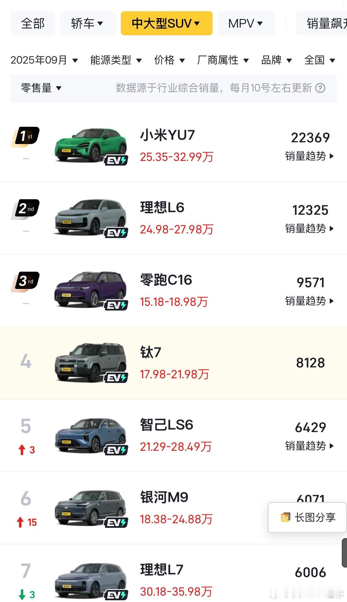 9月9日才上市,竟然已经拿下中大型SUV第四名[流鼻血]今天还有人和我抱怨订车一个多月怎么还没声音,我说你天天打电话骚扰下销售吧……