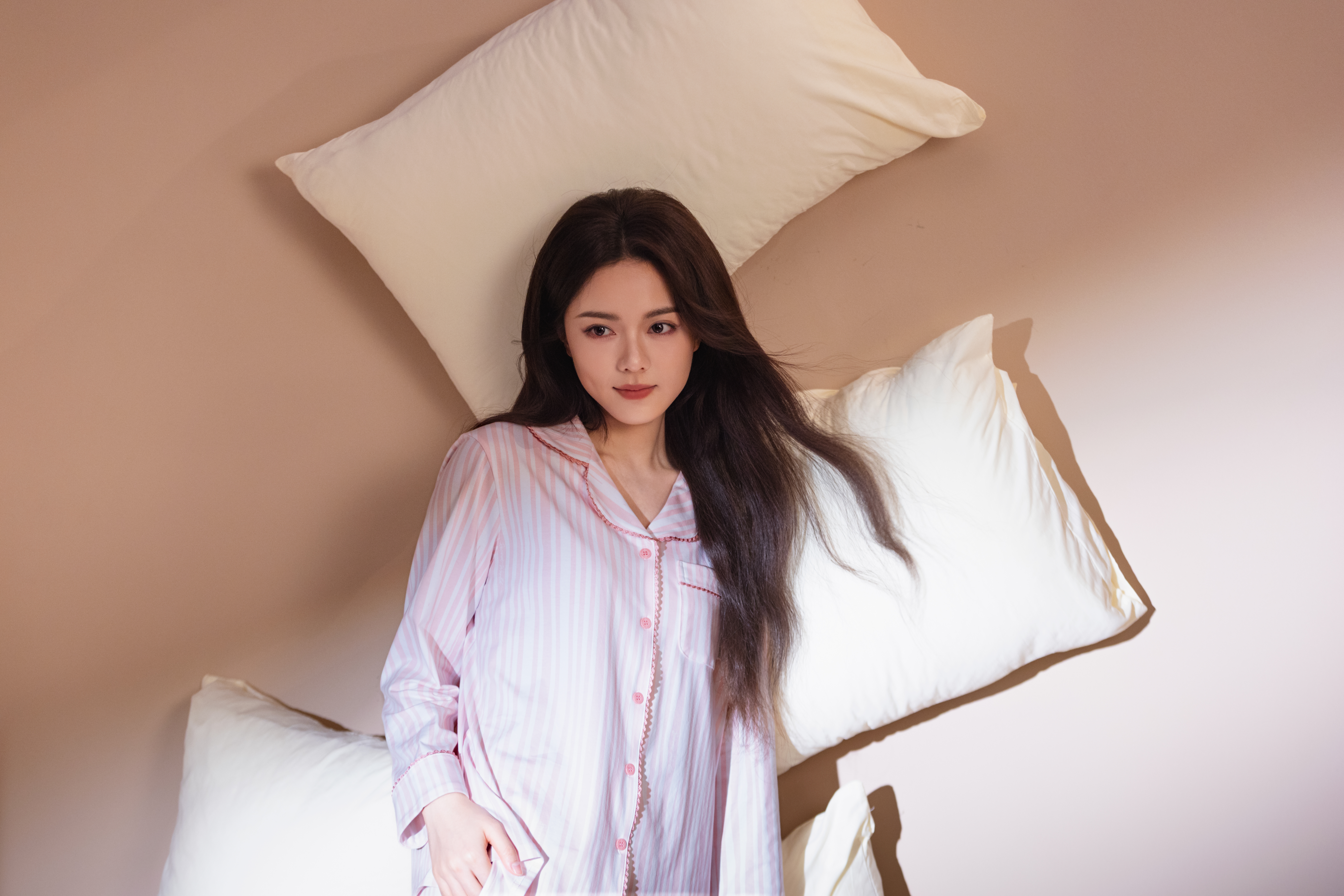 赵今麦 晨起的风掀动睡袍衣角,倚着粉梯回眸时,锁骨漾着晨露似的光。
