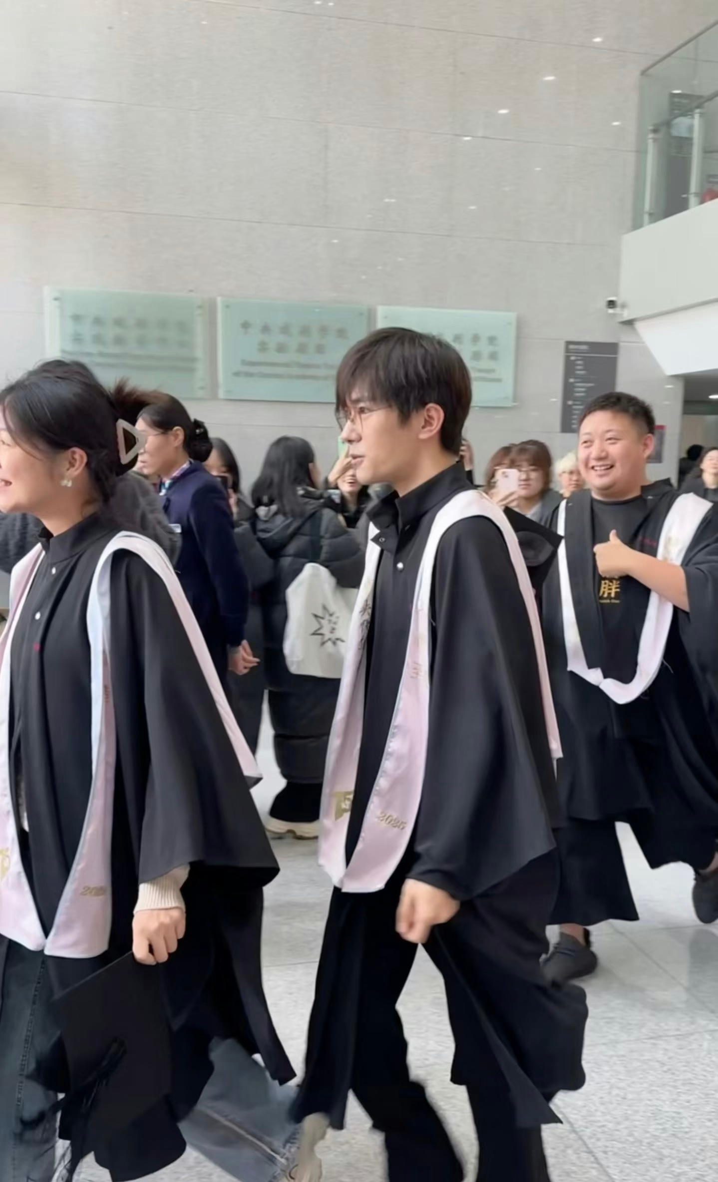 张天爱跟素人合影,胯真的好宽,大宅院似的