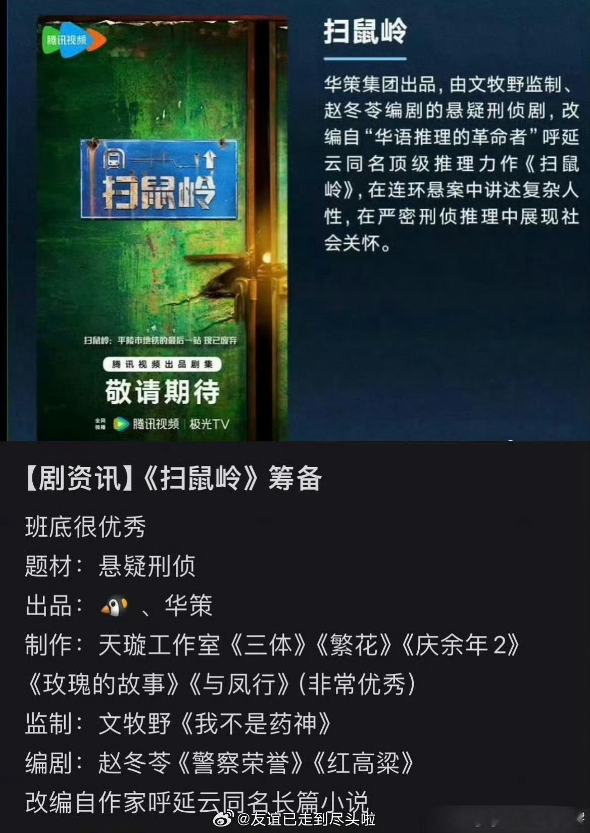 张若昀田栩宁 扫鼠岭田栩宁飞升了!腾讯大饼大IP《扫鼠岭》花落张若昀田栩宁!!看了一下这个剧集班底阵容都好强!狠狠期待了! ​​​