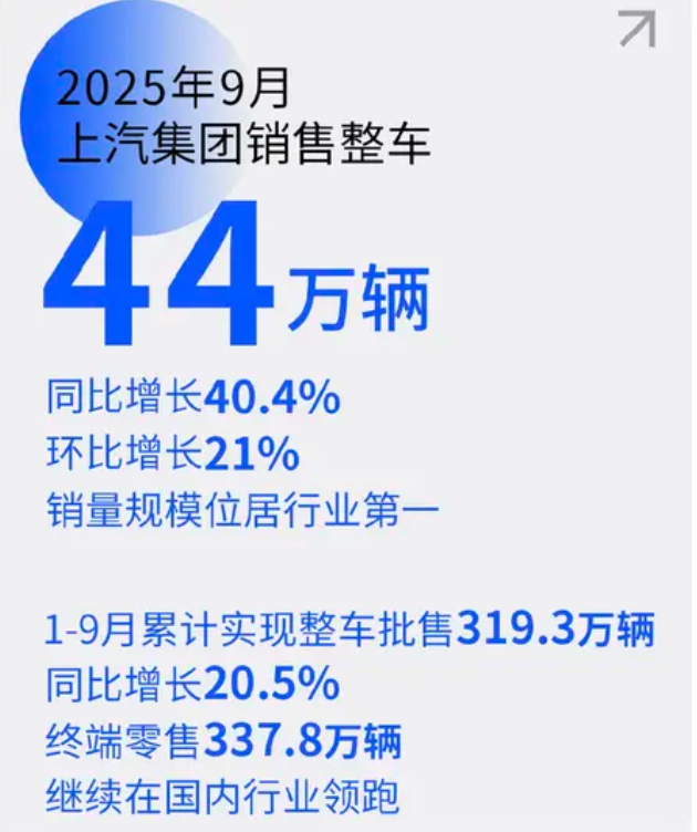 今年比亚迪销量增速确实慢了,上汽集团反而强的飞起,今年8月销量突破36万台,同比暴涨41%,9月份更猛,又卖了44万台,再次暴涨40.4%。而比亚迪9月销量已经没有突破40万台,同比下滑5.5%。虽然上汽重回第一,但只领先比亚迪11万台,差距不是很大,对于今年总销量能否逆袭比亚迪,需要打一个问号,毕竟比亚迪定下的2025年目标销量是460万台。