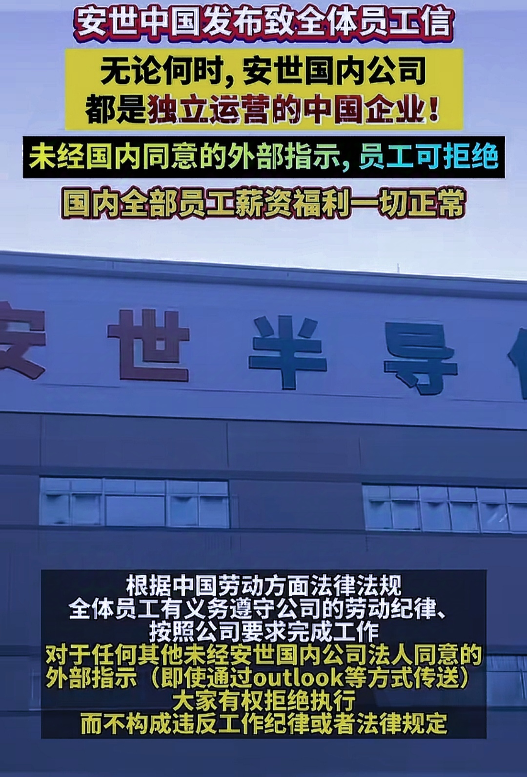 现在安世荷兰和安世中国出现两种不同的情况,安世中国发布致全体员工信,说无论什么时候,安世国内公司都是独立运营的中国企业,未经同意,员工可以拒绝外部指示,并且国内全部员工的薪资和福利一切正常发放。然而安世荷兰那边却急了,荷兰大臣在采访中表示将与中方进行会面谈判。