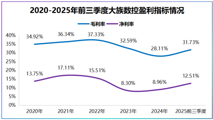 2025年前三季度,公司期间费用率下降至16.88%,毛利率重回30%的水平线,净利率则抬升至12.51%,较去年同期提升了约4个百分点。