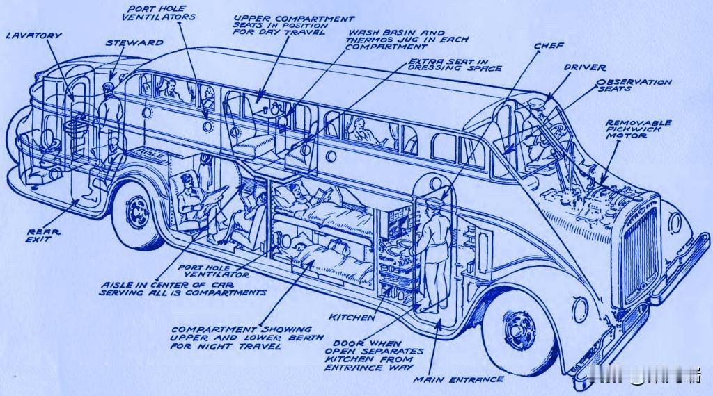 匹克威克夜班车(Pickwick Nite Coach)是一种创新的豪华巴士,由美国匹克威克长途汽车公司(Pickwick Stages System)在1920年代末至1930年代初制造,专为长途夜间旅行设计。它被誉为“轮子上的酒店”。 这款巴士的特点包括: 设计:它是一辆双层巴士,车身采用全金属半单体式结构,车身流线型设计,并配有类似舷窗的窗户,使其外观在当时独一无二。 内部设施:车内设有13个独立隔间,每个隔间可容纳两人,并配有可以转换成上下铺的座位。隔间内还配备了梳妆台、洗手盆、热水瓶和收音机等。此外,巴士还设有厨房、餐厅和洗手间。 由防碎玻璃和硬铝车身制成。第一辆匹克威克双层夜行客车于1928年推出,共生产了四辆。1930年,推出了可容纳53名乘客的日间版和新款夜行客车。新款夜行客车车身较短,长度为9.75米。 服务:巴士上配备了一名乘务员和一名厨师,为乘客提供餐食服务。 运营路线:该巴士主要用于美国西海岸的长途路线,例如洛杉矶与旧金山之间的夜间服务。 匹克威克公司于1929年被灰狗巴士公司收购后,这款巴士也被并入灰狗的车队。