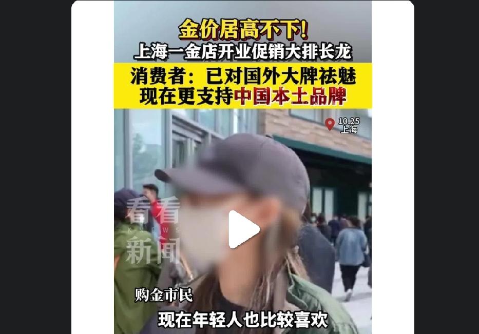 金价涨疯了仍抢着买!上海这家本土金店排长龙,年轻人直言:国外大牌不香了 金价