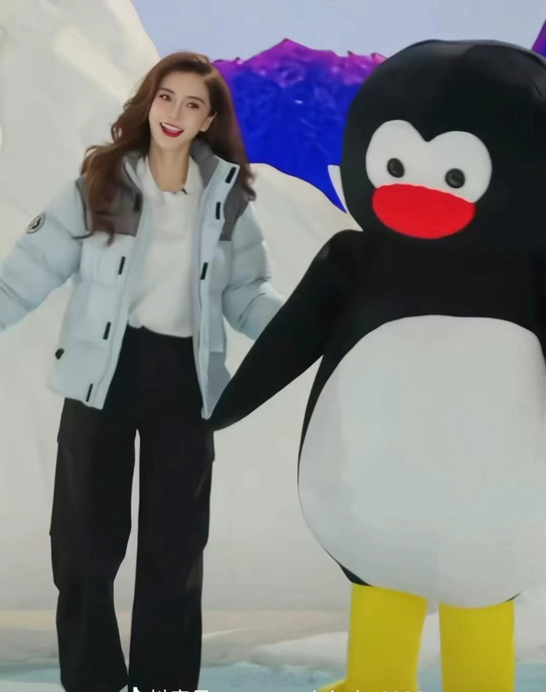 张天爱跟素人合影,胯真的好宽,大宅院似的
