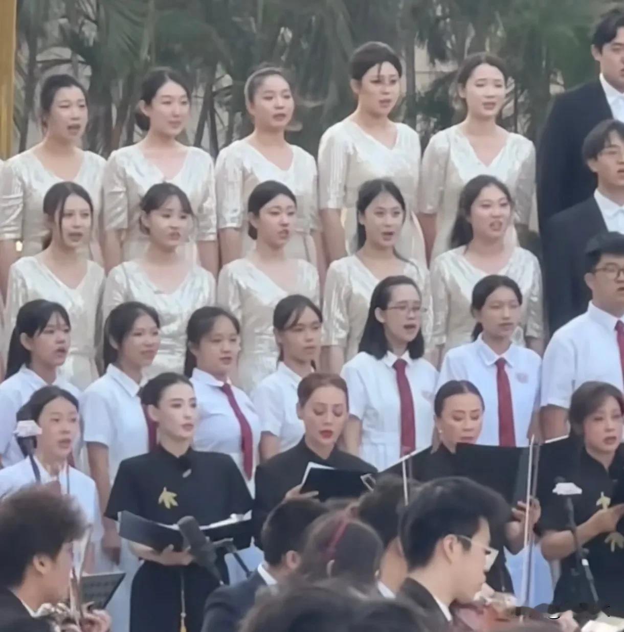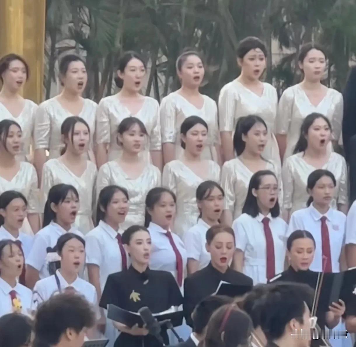 能当明星,都是有出众颜值的! 张柏芝、刘嘉玲、刘晓庆、宁静与众多学生一起合唱《保卫黄河》,后面的学生尽管年轻,风华正茂,脸上有满满的胶原蛋白,但是跟明星比起来,还是逊色一些! 或许妆容有加分,但脸部的轮廓、以及骨相,真的是特别出众!