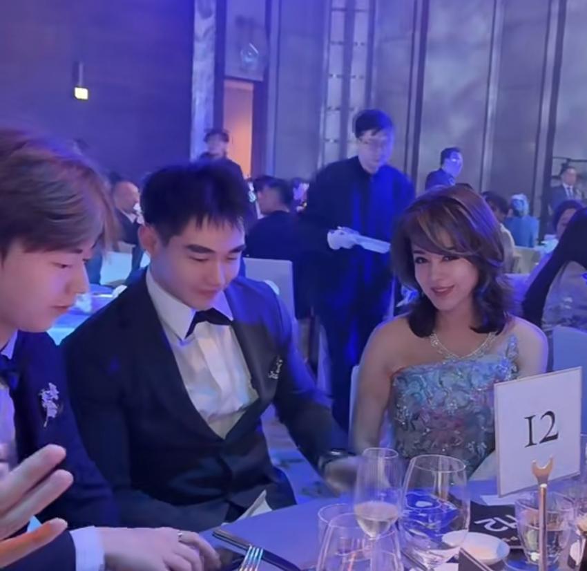 会长于文红跟小30岁的新男友一起秀恩爱的时候,没想到她家大宝正坐在旁边看着他们呢