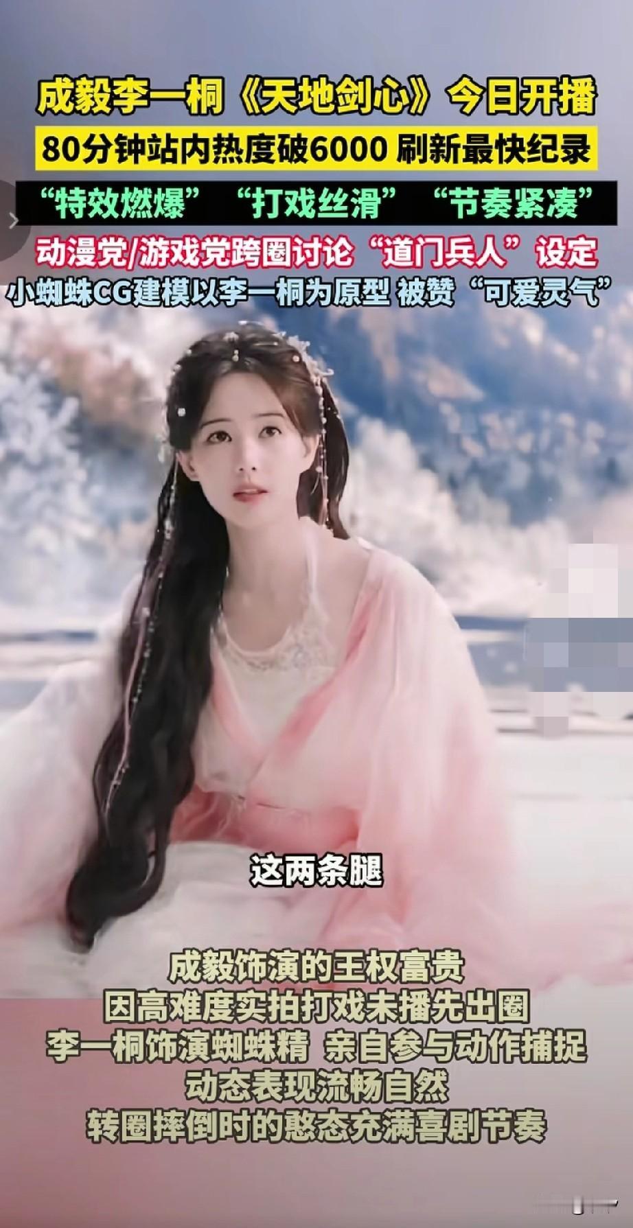 成毅李一桐《天地剑心》今日开播, 80分钟站内热度破6000刷新最快记录, 直接登上热搜, 妖人CP果然还是大受欢迎。 首集便特效超燃, 打戏丝滑,节奏紧凑, 符合爆款剧的特征, 还吸引了游戏圈和动漫党的讨论。 小蜘蛛CG建模被赞可爱灵气, 道门兵人设定也是新颖, 看到他的宣传, 又是人妖恋虐心爱情剧。 不过这部剧成毅因为王欢富贵打戏高难度未播先火了! 大家觉得这会是一款大爆剧吗? 成毅杀青照李一桐 天地剑心 成毅演技差 成毅身材照 天地剑心追剧团 天地剑心追剧团 成毅生日写真