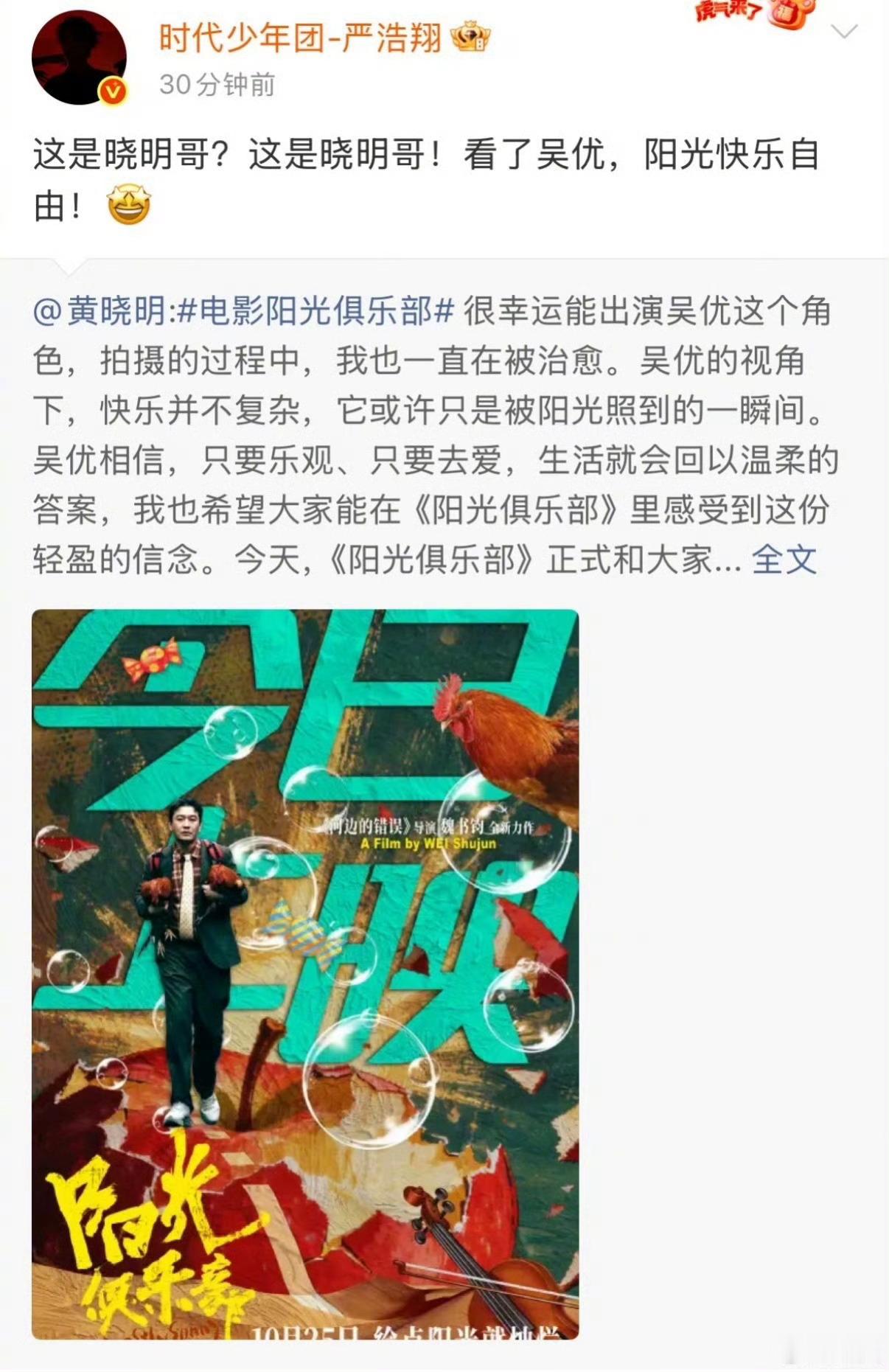 严浩翔包场黄晓明新片严浩翔包场黄晓明阳光俱乐部