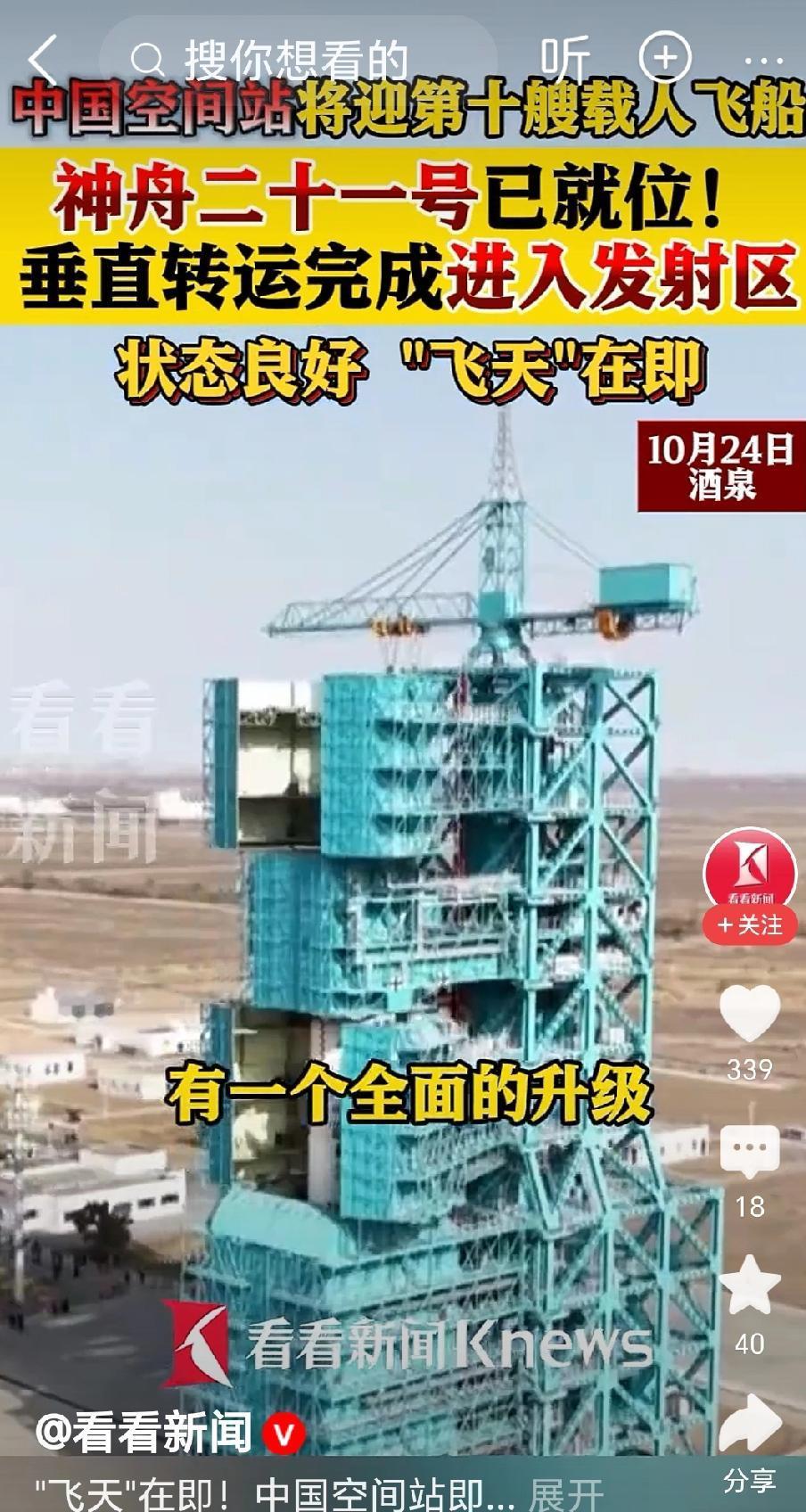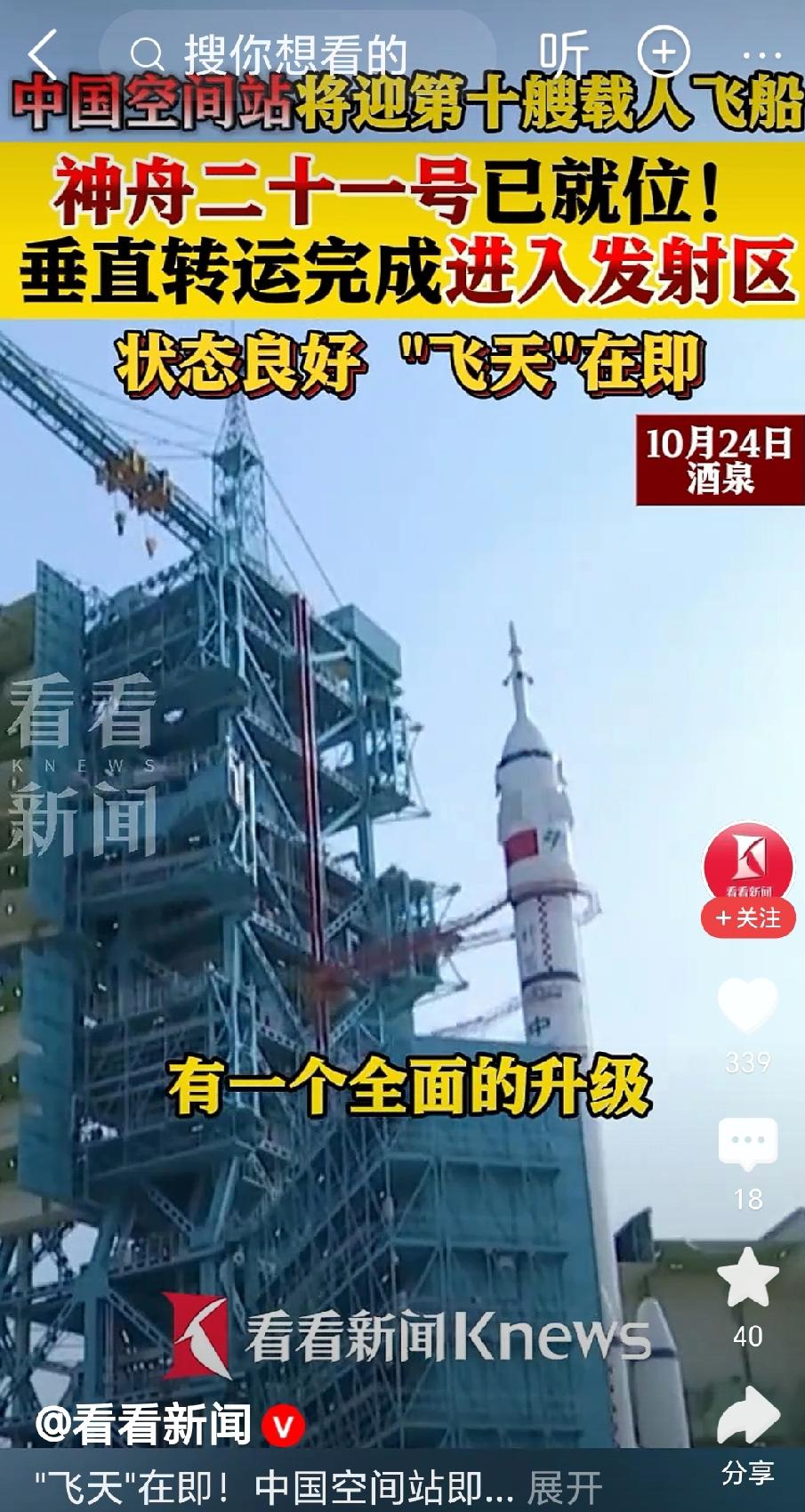 中国空间站马上要迎来十艘载人飞船啦,这次的主角是神舟二十一号。今天上午,它和长征二号F遥二十一运载火箭组合体成功从总装测试厂房转运到发射区,准备择机发射。转运时,工作人员一路热情护送这“大家伙”走完最后1.5公里。 为确保任务圆满,发射中心针对可能出现的问题做了双想工作。而且,本发火箭有16项技术改进,光学导航系统全面升级,惯性测量组合冗余度提升,飞行可靠性大大增强。期待神舟二十一号顺利发射,让中国航天“十全十美”!