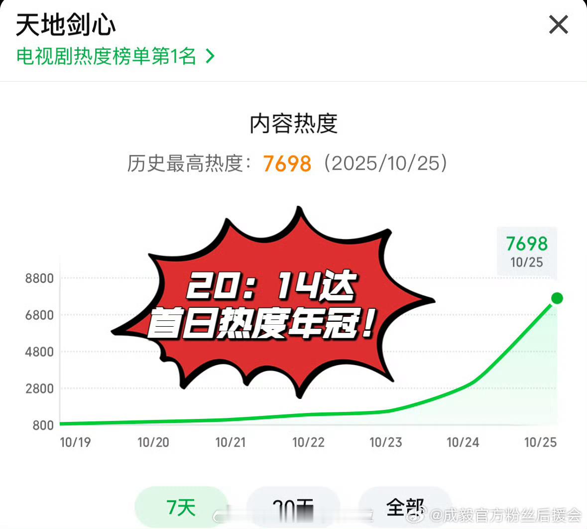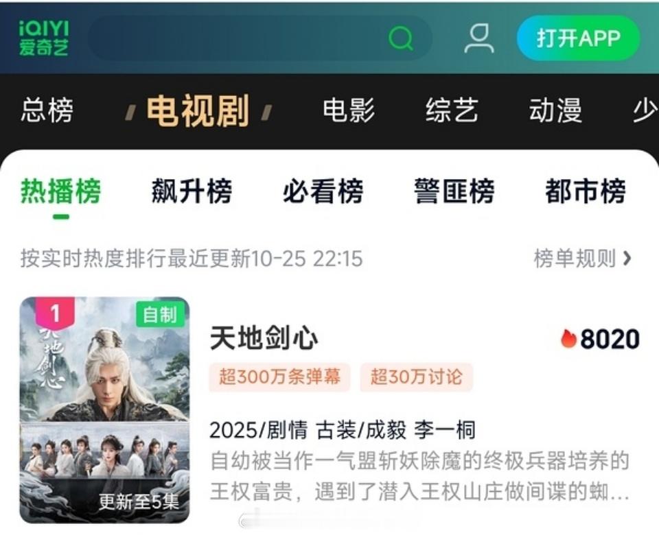 《天地剑心》首日热度峰值破8000啦,拿下🥝今年已播剧首日热度第一,成毅又一个首日爆开实绩get[good][good][good]