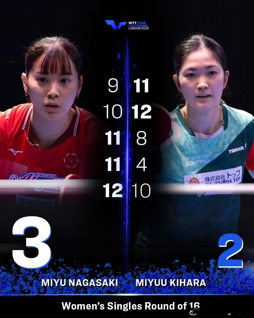 这些本国选手为争夺一个四分之一决赛席位展开正面交锋,最终长崎美柚以及头号种子张本美和、张本智和成功胜出💪