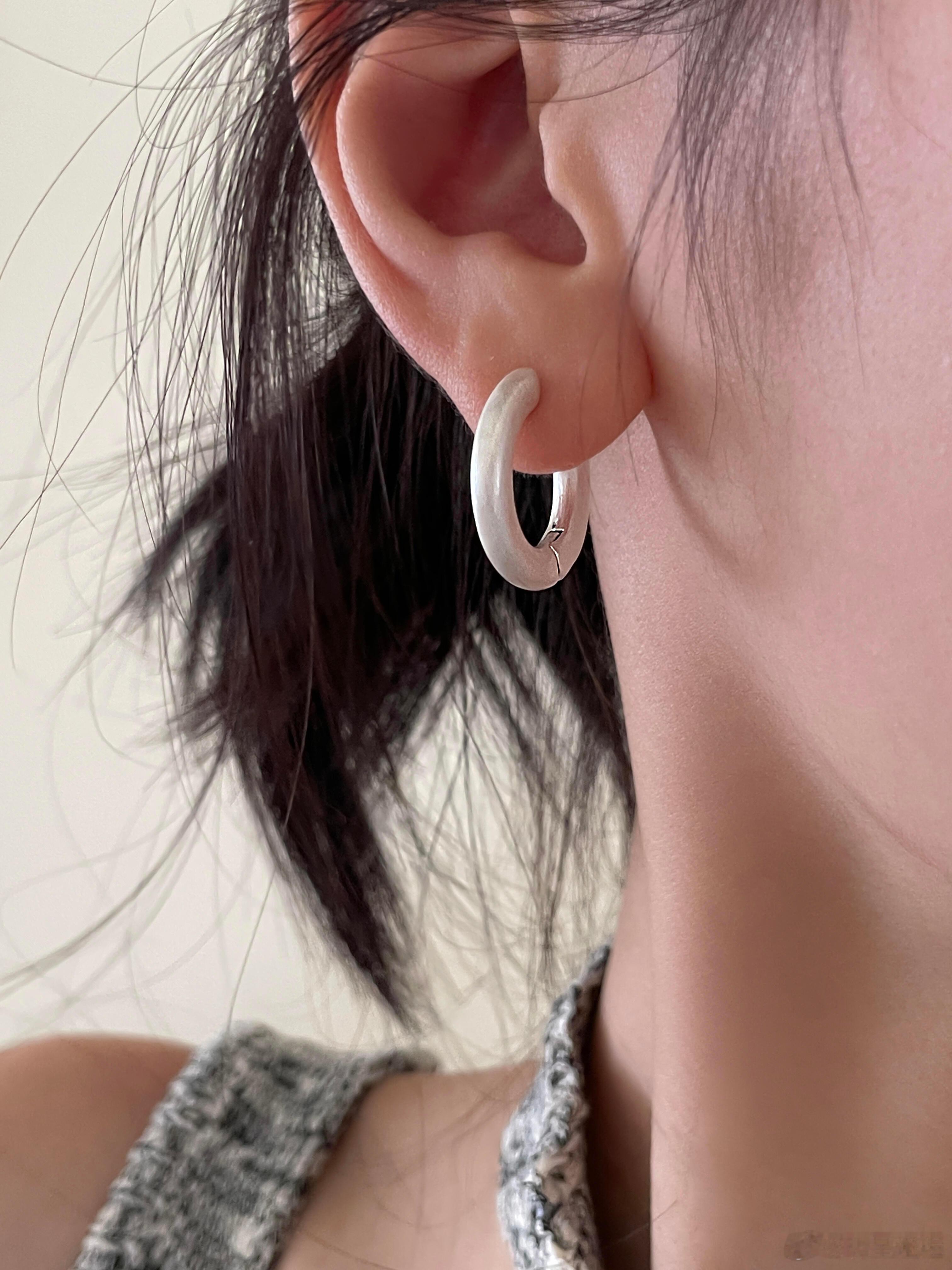 简约而经典的银色圆环耳环。它以其流畅的圈形线条和光亮的金属质感成为视觉焦点,完美贴合耳垂,大小适中。在乌黑发丝与白皙肤色的映衬下,耳环更显利落醒目。佩戴者手指轻触脸颊的动作,不经意间凸显了饰品的精致存在感。整体设计摒弃繁复,以极简风格勾勒出优雅轮廓,无论是单独佩戴还是叠搭都能轻松提升气质,展现出一种低调且不失格调的日常高级感。时尚配饰