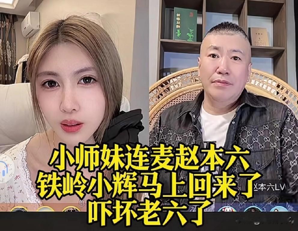 小师妹向赵本六展示凹凸身材! 赵本六随机连麦遇到小师妹,尬聊对话透露铁岭小辉即将出狱!赵本六寄语希望小师妹能和小辉复婚好好过日子,即便回来再给我开专场也不会回应。自己这辈子都不想见小辉! 小师妹还媚笑的给赵本六展示凸出身材,赵本六制止说道:快别显摆了,不然小辉又该生气了!
