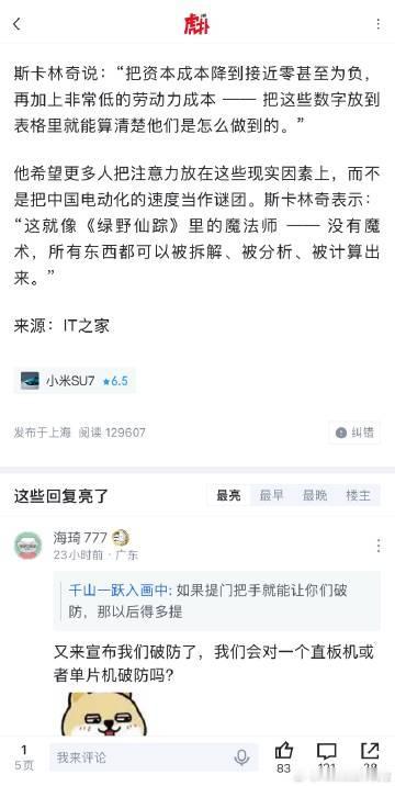 海外新势力拆了一台小米SU7,Rivian CEO表示:做得确实不错【来自懂车帝车友圈】